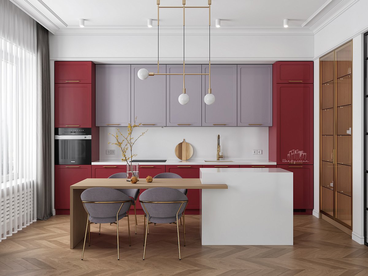 Матовые поверхности приходят на смену глянцевым. В тренде – матовая краска на стенах, матовая плитка и матовые фасады кухни. Глянец уходит в прошлое, он безнадёжно устарел.