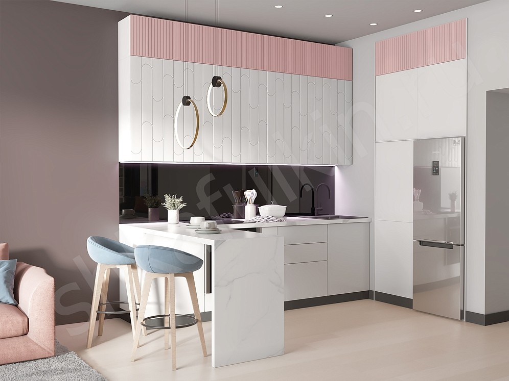 В кухне же розовый цвет добавит свежести и жизнерадостности, особенно в сочетании с молочными или белыми тональностями.