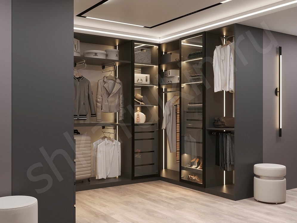 - Выберите правильное место - в спальне размером от 18 кв.м. и более, вы можете создать гардеробную вдоль стены или использовать свободный угол. Выберите место, которое будет удобным и эффективным для доступа к вашим вещам.