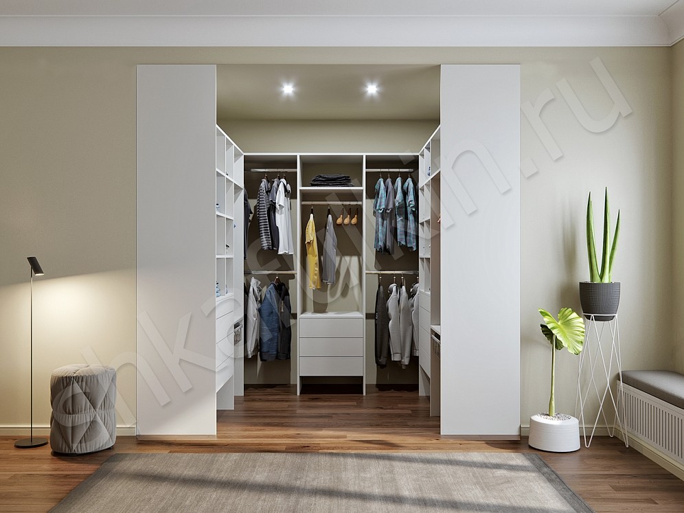- Определите доступное пространство - измерьте площадь помещения, чтобы понять, сколько места есть у вас для создания гардеробной. Учтите, что помещение для переодевания должно быть не менее 2 кв. м.