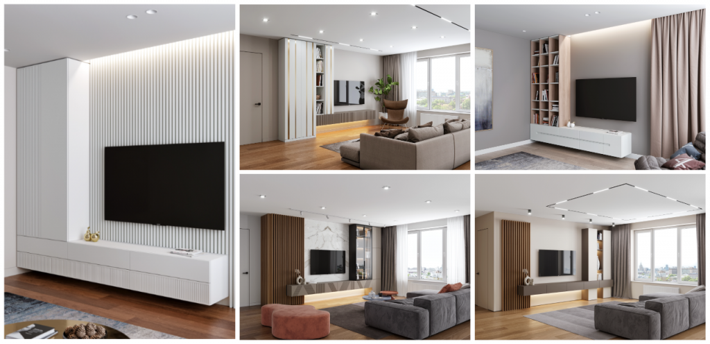 Стоит также избегать громоздкую мебель, тяжеловесную, которая прикована к полу и выглядит, будто якорь. Если мы говорим о мягкой мебели, такой как диваны, то лучше выбирать изделия на ножках. Чем больше видно открытого пола, тем большим кажется пространство. То же самое касается корпусной мебели. Лучше отдавать предпочтение подвесной мебели, если есть такая возможность. Например, если мы готовим о тумбочке под ТВ, то лучше выбрать «парящий» вариант. Так создается максимальное ощущение открытого пространства пола.