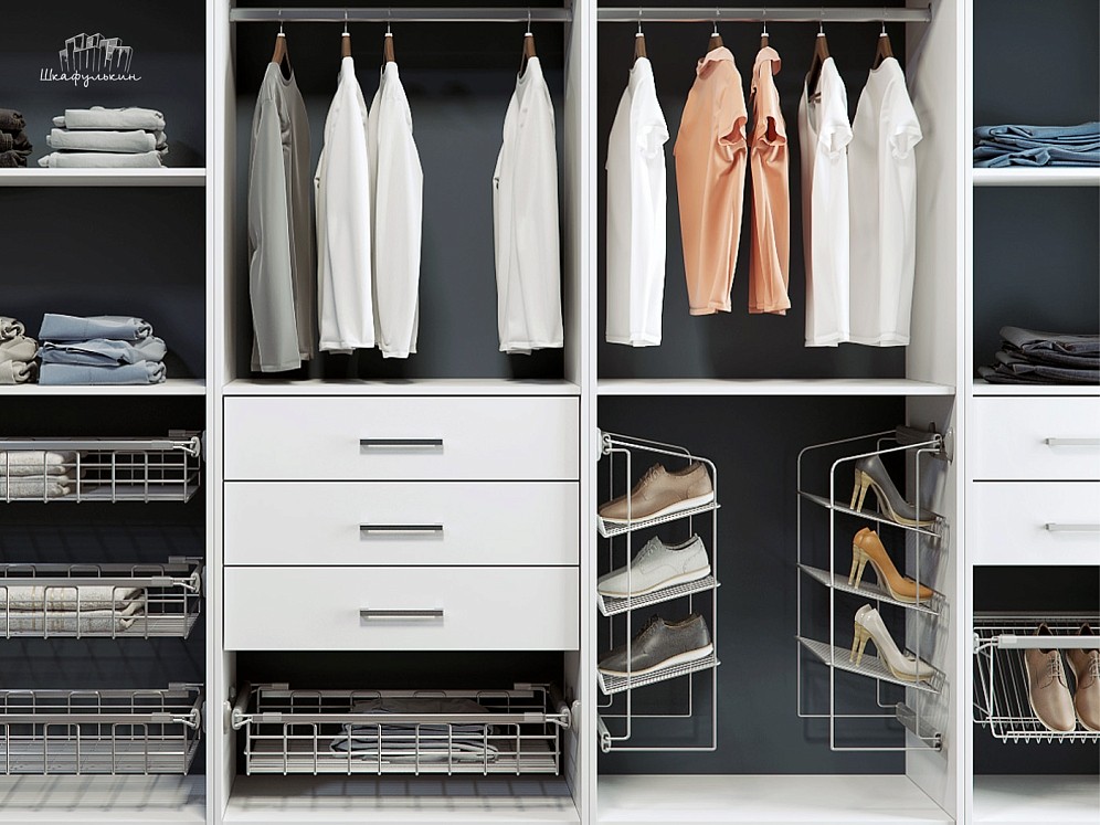 Казалось бы, не трудный вопрос. Но до тех пор, пока вы не дойдёте до организации систем хранения. Вот тут-то и начинают появляться «подводные камни»: то платья с брюками мнутся; то оказывается, не были предусмотрены места для хранения верхней одежды и обуви; то неплохо бы было перед покупкой заблаговременно продумать удобные корзины для постельного белья. В общем, всего не перечислишь – у каждого из нас разное количество вещей. Сегодня поговорим о том, как правильно организовать систему хранения в шкафу, чтобы впоследствии не жалеть о его приобретении.