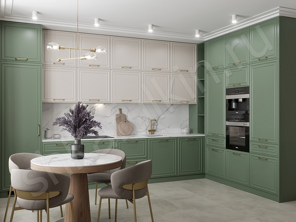 А различные мебельные секции, включающие в себя: навесные шкафчики, пеналы, тумбы с ящиками и разнообразные открытые и закрытые полки дают возможность для комфортного времяпрепровождения на кухне, где каждый предмет находится на своём месте. Кроме того, в случае индивидуального заказа, вы расширите возможности для разнообразных и оригинальных решений.