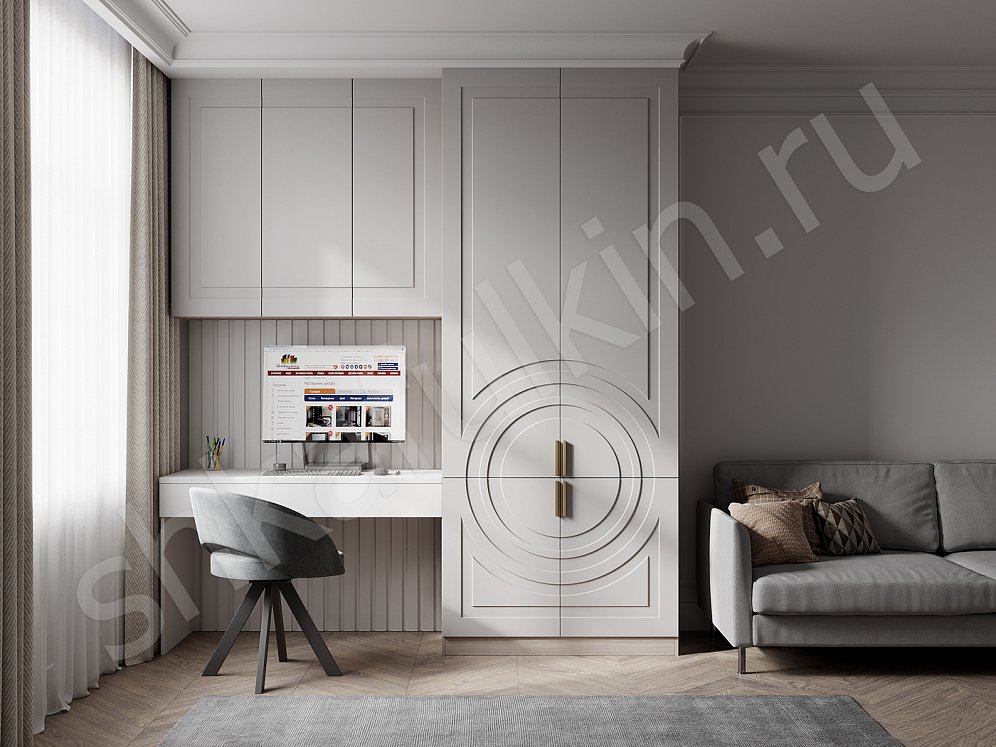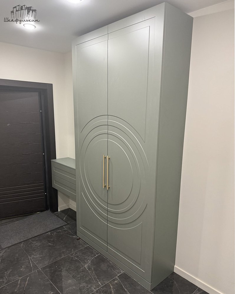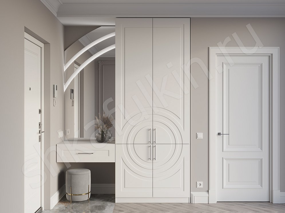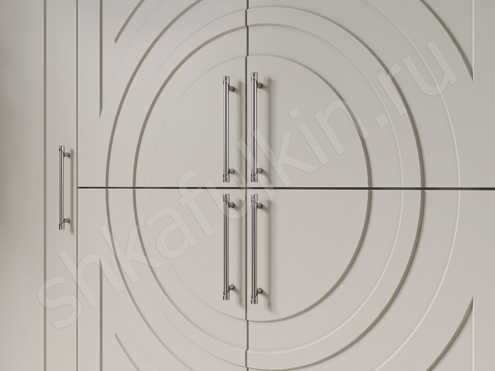 Коллекция спроектирована так, чтобы быть основой для множества интерьерных историй. Благодаря спокойной палитре, качественным материалам и тщательно выверенной фрезеровке фасадов коллекцию легко адаптировать под различный стиль – от сканди до модерна, от неоклассики до сдержанного классического минимализма. Фасады с повторяющимся круглым узором создают единый ритм по всей квартире, но не навязывают характер пространства: вы сами формируете атмосферу.