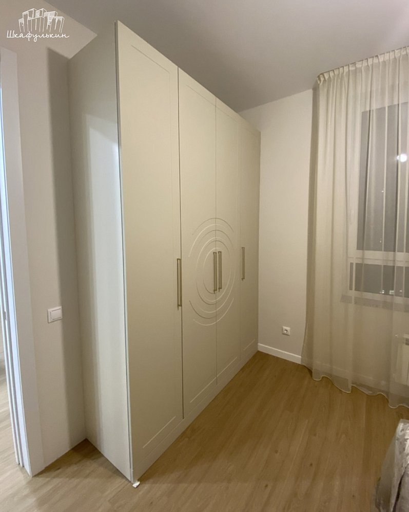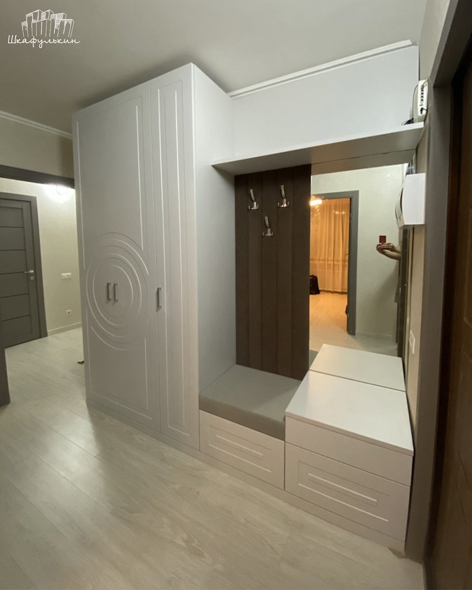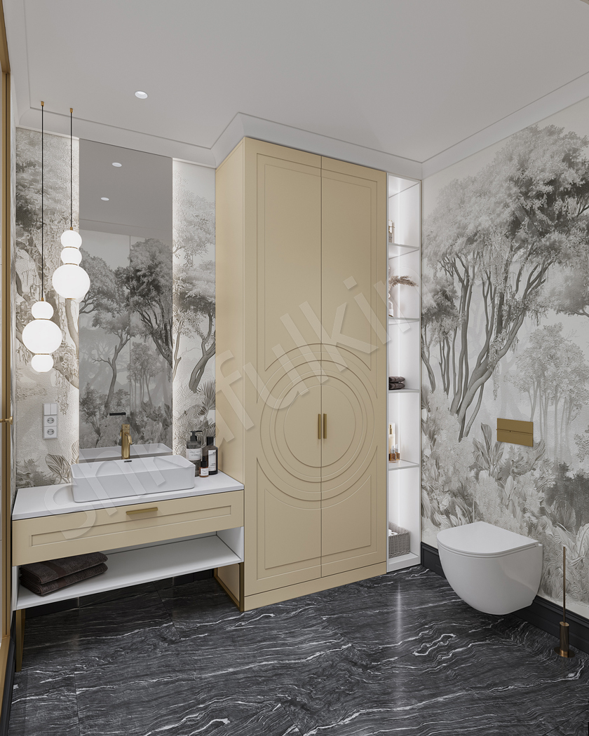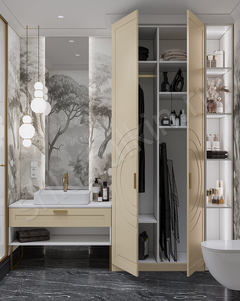 Коллекция спроектирована так, чтобы быть основой для множества интерьерных историй. Благодаря спокойной палитре, качественным материалам и тщательно выверенной фрезеровке фасадов коллекцию легко адаптировать под различный стиль – от сканди до модерна, от неоклассики до сдержанного классического минимализма. Фасады с повторяющимся круглым узором создают единый ритм по всей квартире, но не навязывают характер пространства: вы сами формируете атмосферу.