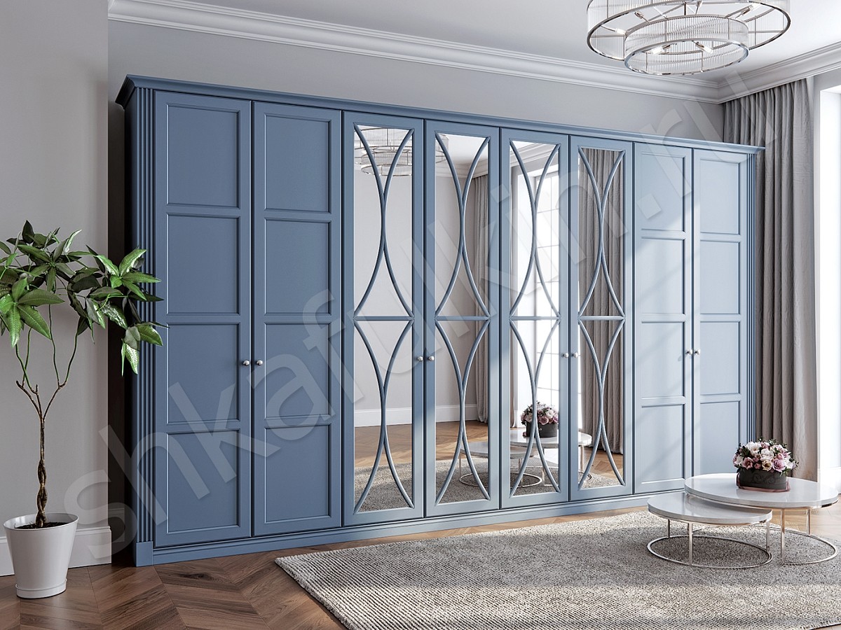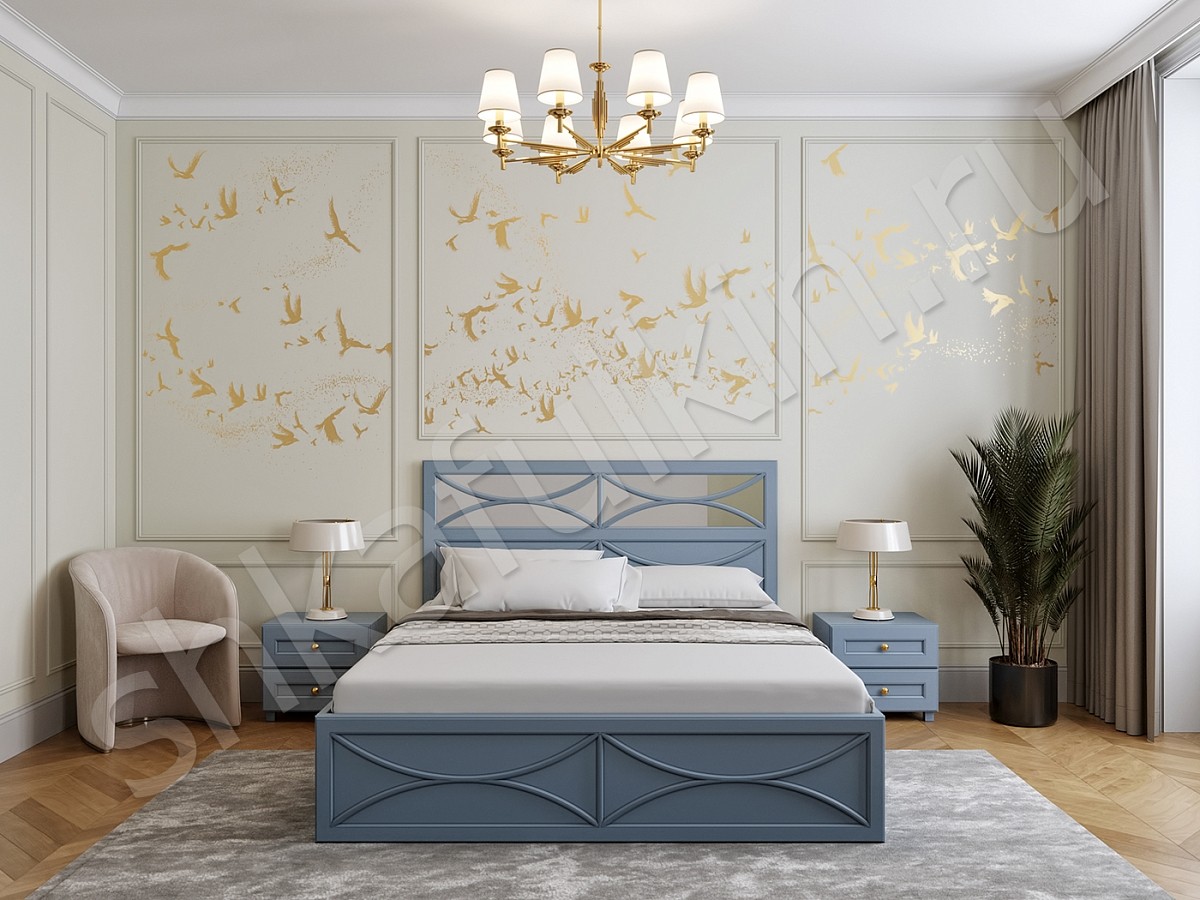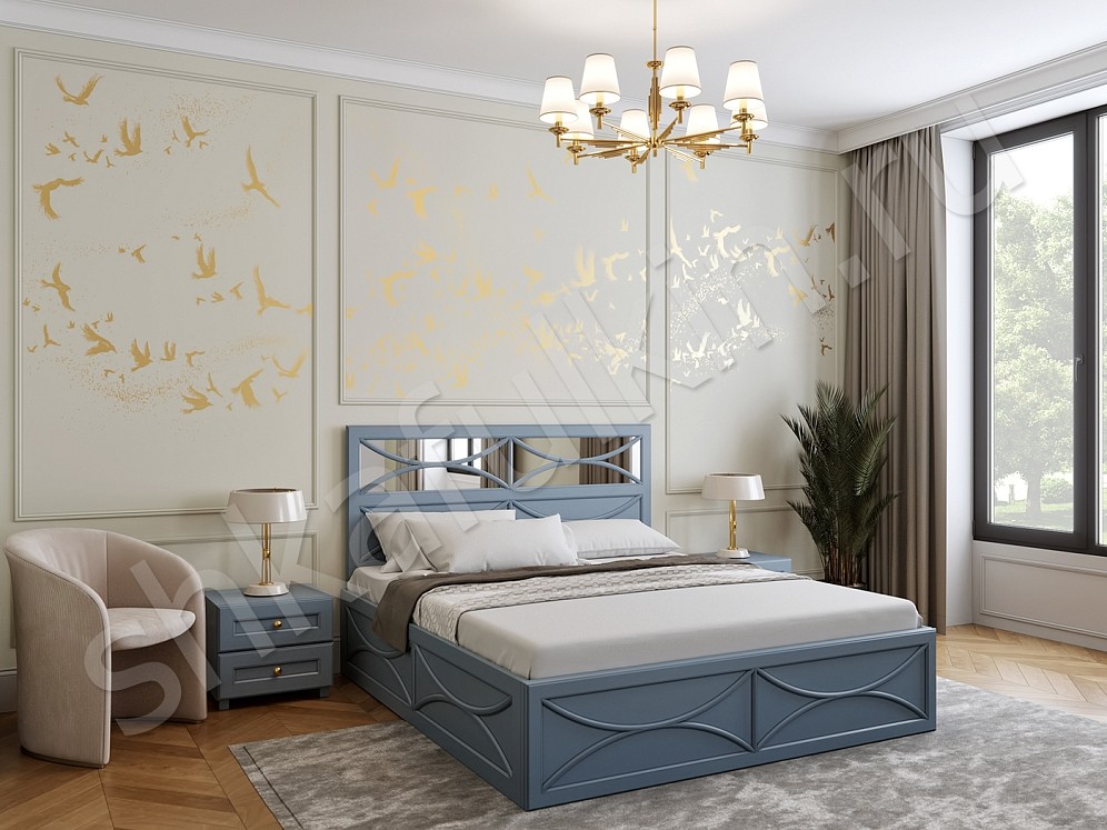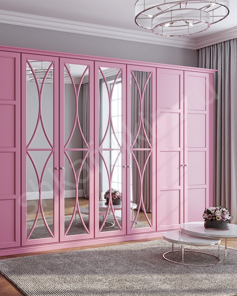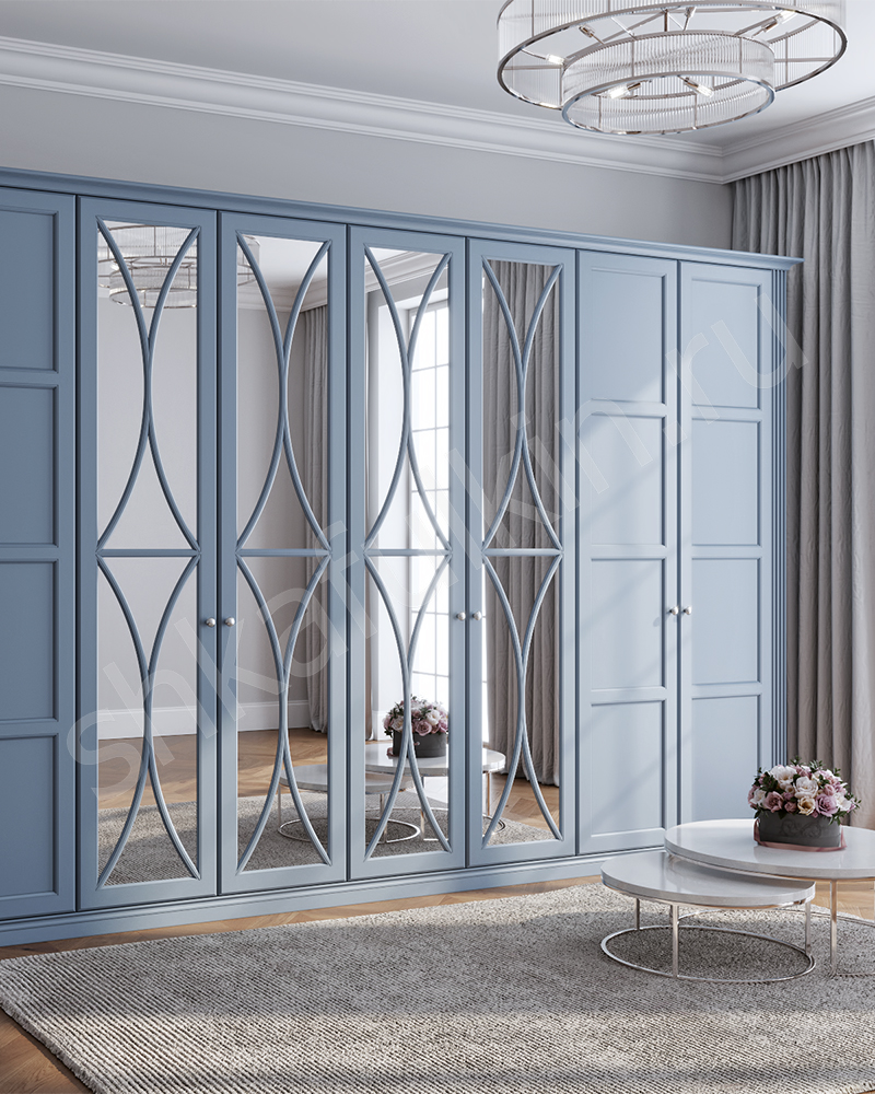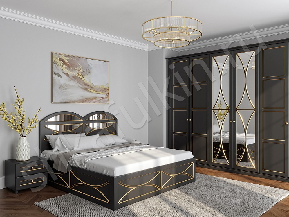 Коллекция представлена несколькими позициями в линейке: шкаф распашной с зеркалом и без него, спальный гарнитур и напольная тумба.