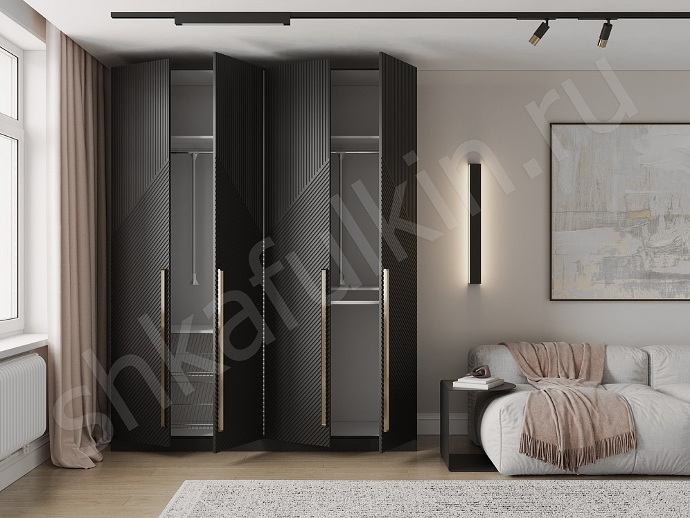 Выполненный из фрезерованного МДФ шкаф гармонично сочетает в себе утончённость и функциональность, создавая в жилом помещении атмосферу элегантности и стиля. Особенно стоит подчеркнуть практические характеристики этого изделия – основные элементы внутреннего наполнения этого изделия предусмотрены для вашего максимального удобства.