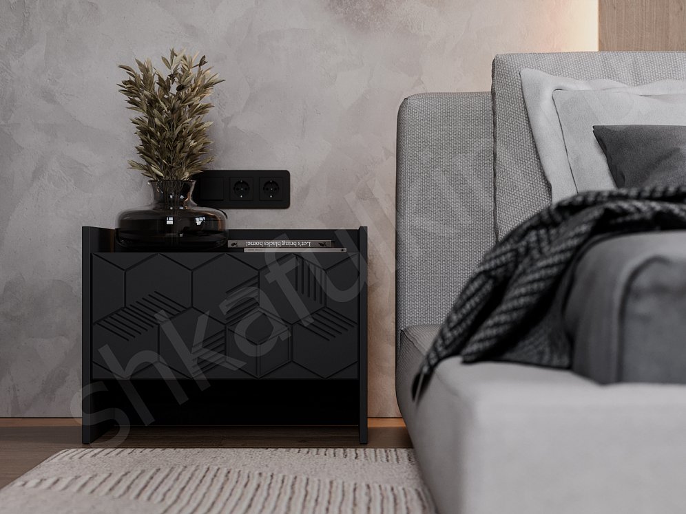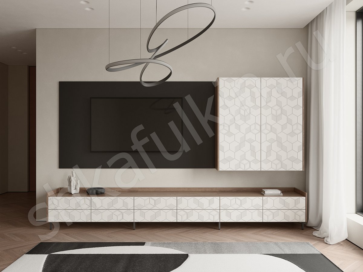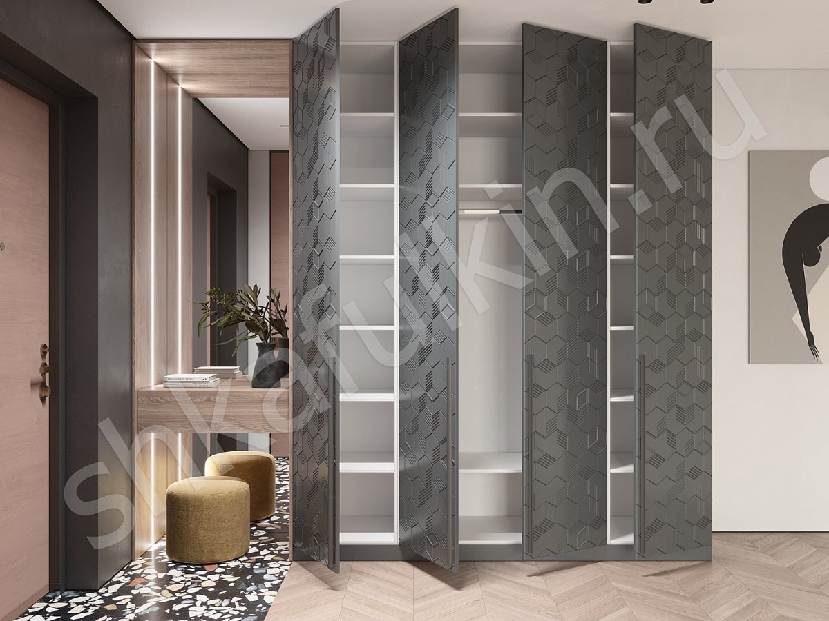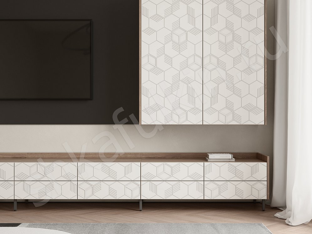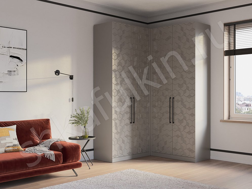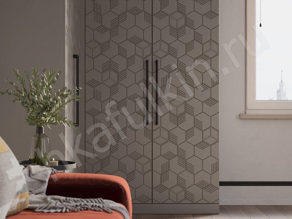 Главная её изюминка – уникальный дизайн фасадов в виде рисунка, имитирующего пчелиные соты. Эта техника превращает стандартные шкафы в выразительные арт-объекты, наполняя интерьер особым характером и динамикой.