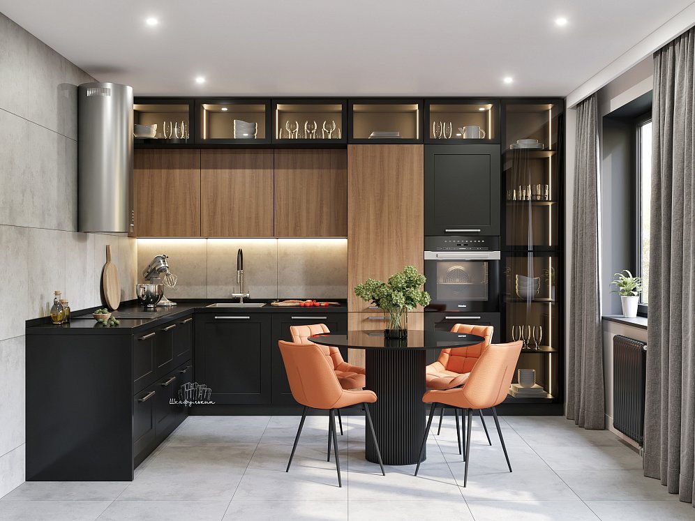 К слову, современные тренды в кухонном дизайне изменили подход к организации пространства. Раньше скрывали всё за глухими фасадами. Теперь популярны открытые полки и прозрачные элементы.