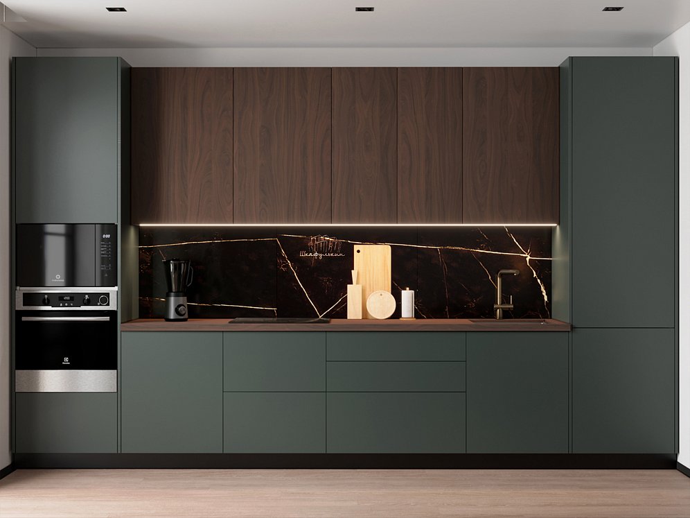 ✅Тренд №2: модные фартуки для кухонь любого размераВ 2025 году дизайнеры активно используют крупноформатные керамические плиты, цельные стеклянные стены, натуральный камень, дерево или его качественные имитации для оформления фартуков.