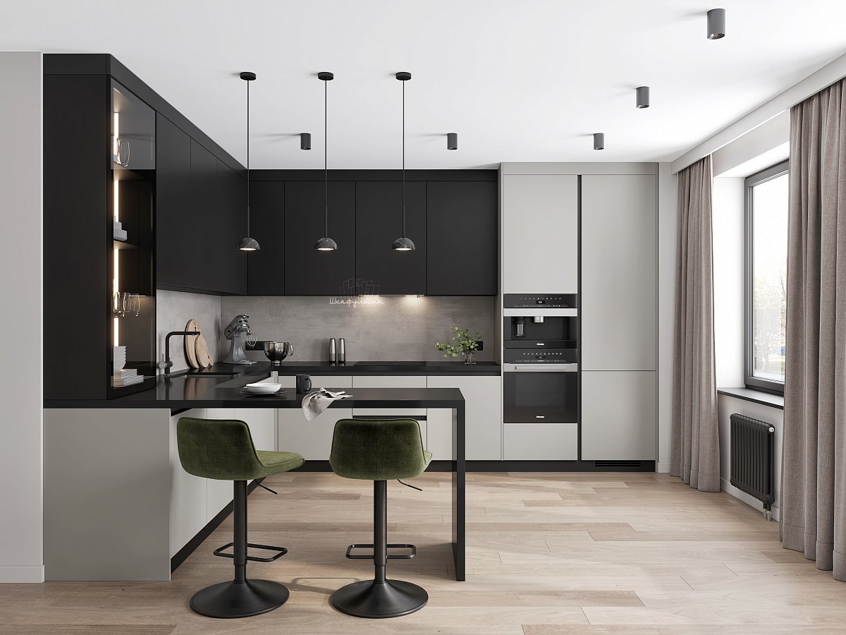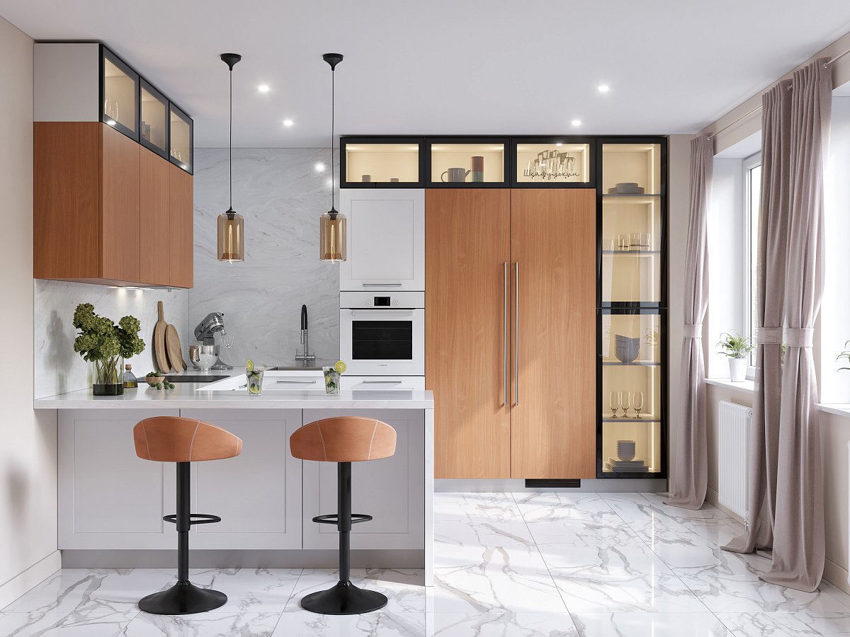 В дизайне компактных кухонь на первый план выходит оптимизация пространства, включая организацию обеденной зоны. Здесь на помощь приходят складные и выдвижные столы, а также компактные барные стойки. Они помогают эффективно использовать каждый квадратный метр, не теряя функциональности.