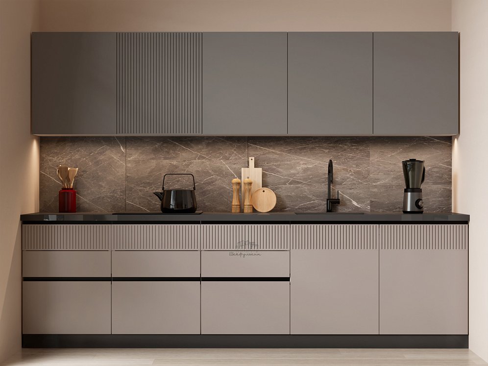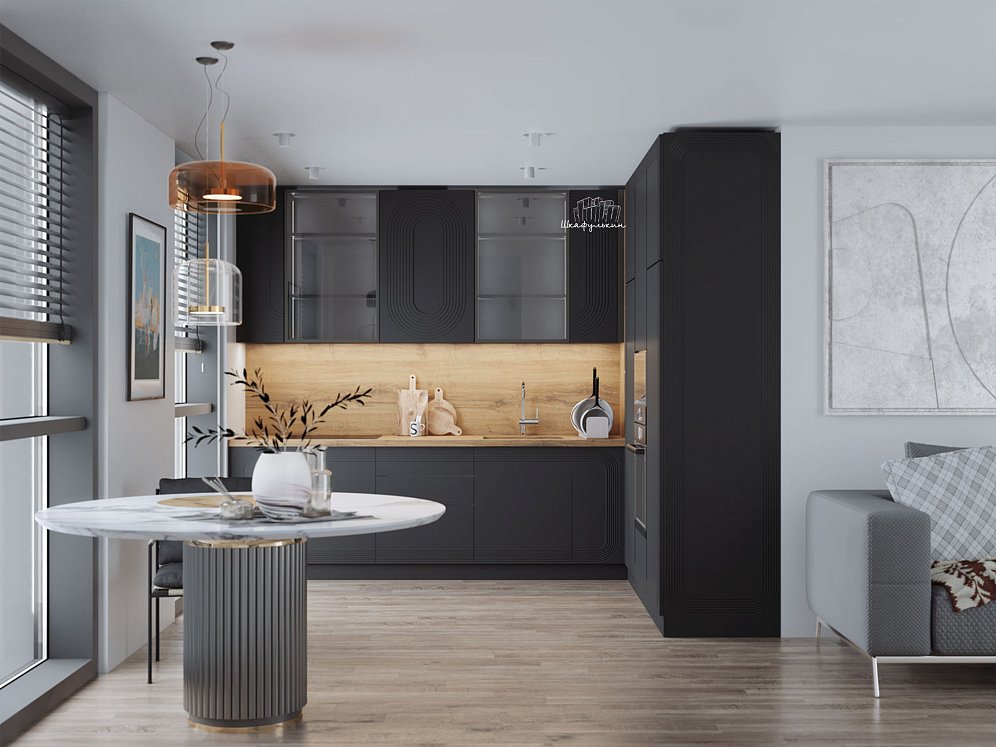 Настоящим трендом стали фасады с 3D-эффектом. Для создания объёмных геометрических рисунков используют фрезерованные МДФ-панели. В моде волны, вертикальные линии, ромбовидные насечки, геометрические фигуры и сотовые структуры – они придадут фасадам уникальный вид и создадут игру света и тени. Плюс это сделает кухонное пространство более живым и динамичным.