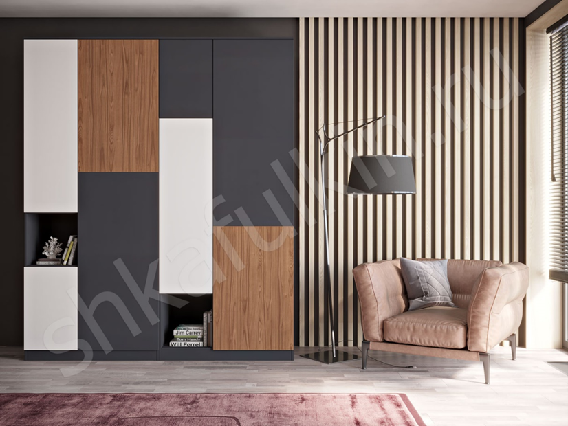 Взгляните на наш шкаф Денди. Его фасады состоят из трех групп, различных по форме и цвету. За счет этого, мебель выглядит строго, лаконично и в то же время смело. Превосходство в простоте, иначе не скажешь.