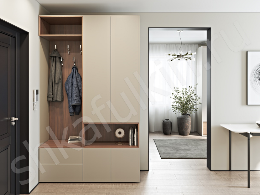 Взгляните на нашу прихожую Мэрри. Ее цвет обладает широкими возможностями комбинирования, поскольку в сравнении с холодными серыми тонами, он смотрится более теплым, а с бежевыми и коричневыми оттенками – скорее серым.