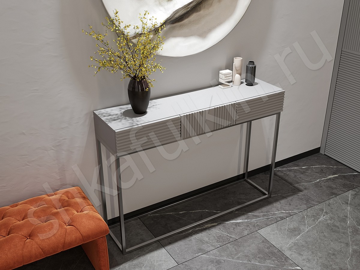 В свою очередь, пространство в жилых помещениях дополнит также консоль на металлокаркасе. Она подарит пространству нотку современности и утончённости.