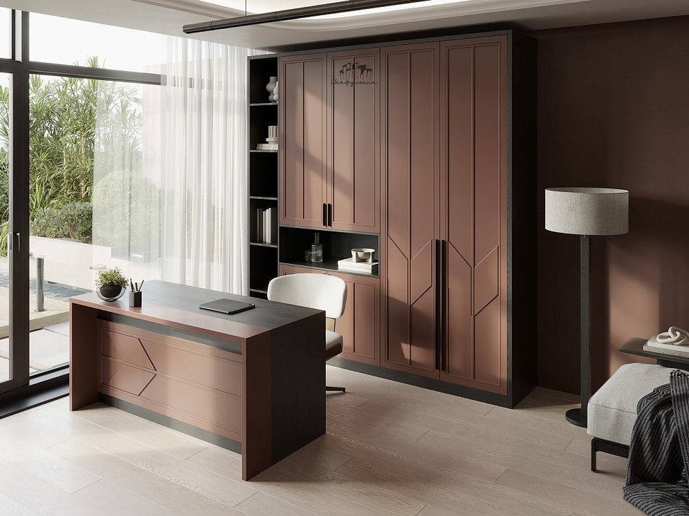 - Гладкие и блестящие поверхности. Лакированная деревянная мебель отражает свет, делая коричневый цвет более насыщенным. Такие поверхности создают ощущение роскоши и элегантности. Примеры: глянцевые столы, лакированные шкафы, зеркальные поверхности.