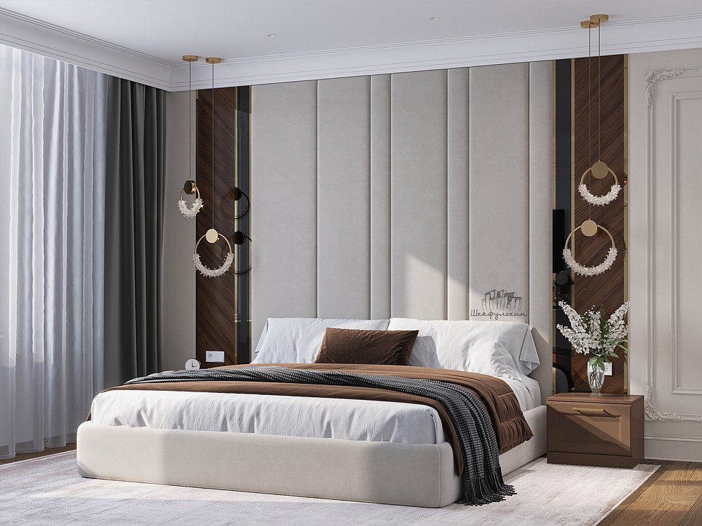 - Классический стиль. Коричневый цвет хорошо сочетается с традиционными материалами, такими как дерево, бархат и шерсть. В классическом стиле этот цвет может быть дополнен бежевым, кремовым, золотистым и белым цветами. Примеры: массивная мебель с резьбой, диваны с обивкой из бархата, кровати с красивым высоким изголовьем и т.д.