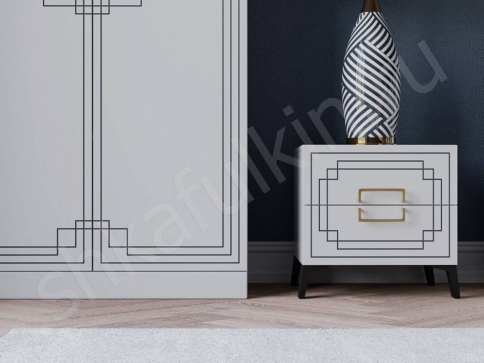 Коллекция сможет подойти как для людей с классическими и традиционными взглядами, так и для тех, кто ценит оригинальность и некий визуальный вызов в дизайне интерьера. Здесь современные формы и стильное решение сочетаются с "артистичными" и причудливыми деталями, что делает её привлекательной для разнообразных вкусов и предпочтений. В частности такой эффект достигается благодаря фрезеровке в форме квадрата, который привносит современный и стильный внешний вид фасаду шкафа. Плюс такая фрезеровка используется для выделения определённых зон на фасаде, что добавляет дополнительную глубину и характер мебели.