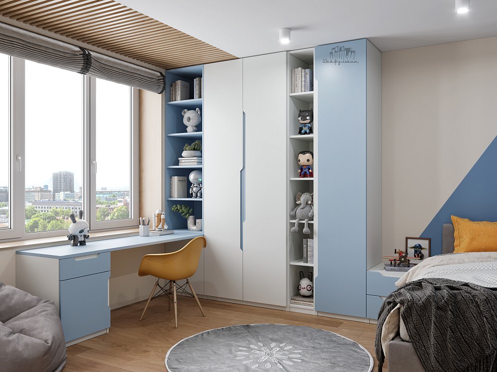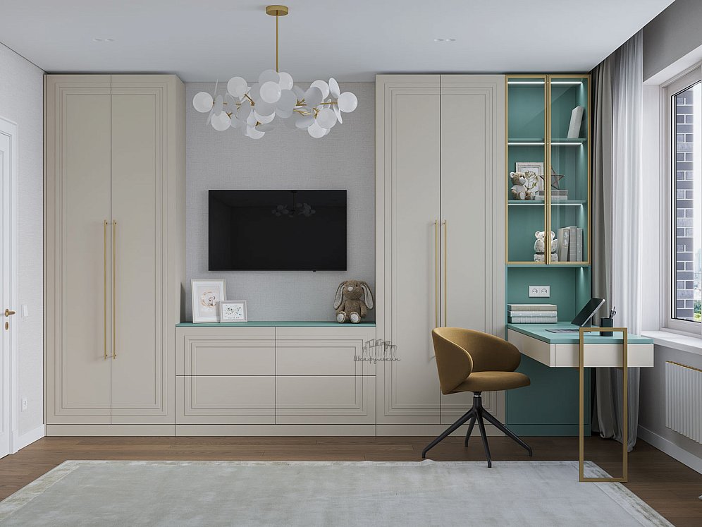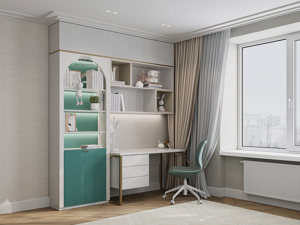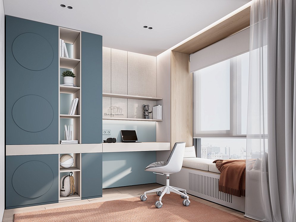 В современной детской спальне важно обеспечить достаточное естественное освещение для рабочей зоны. Поэтому стол для компьютера или письменных занятий лучше размещать рядом с окном. Это может быть пространство под подоконником или свободный уголок.