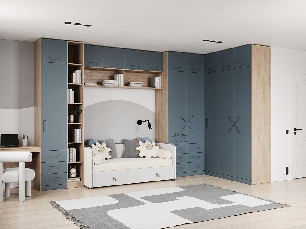 - Безопасность. В пространстве для маленьких детей не должно быть острых углов, доступных розеток, тяжелых предметов, которые могут неожиданно упасть. Также стоит избегать использования сомнительных отделочных материалов. Для подростков выбор декора более разнообразен, но качественные материалы остаются ключевым требованием.