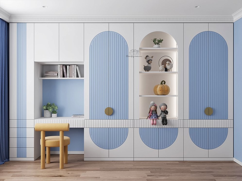 Идеально, если в детской комнате предусмотрено место для хранения одежды, игрушек и постельного белья. Иногда к комнате примыкает кладовка, где можно создать небольшую гардеробную. Если такой возможности нет, разместите в детской вместительный шкаф или комод. Кроме того, необходимо предусмотреть полки или стеллажи для книг, игрушек или декоративных элементов.