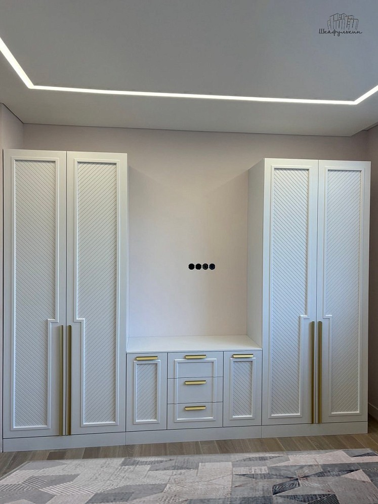 Угловые полосы, в свою очередь, придадут мебели не только элегантный, но и современный вид, создавая эффектный визуальный ряд. Эти фасады могут быть использованы в интерьере, оформленном в таких популярных стилях, как неоклассика, арт-деко и современный минимализм. В отличие от традиционных деревянных реек, рифленые фасады не требуют обязательного использования древесного декора, что открывает широкие возможности для цветовых и текстурных решений.