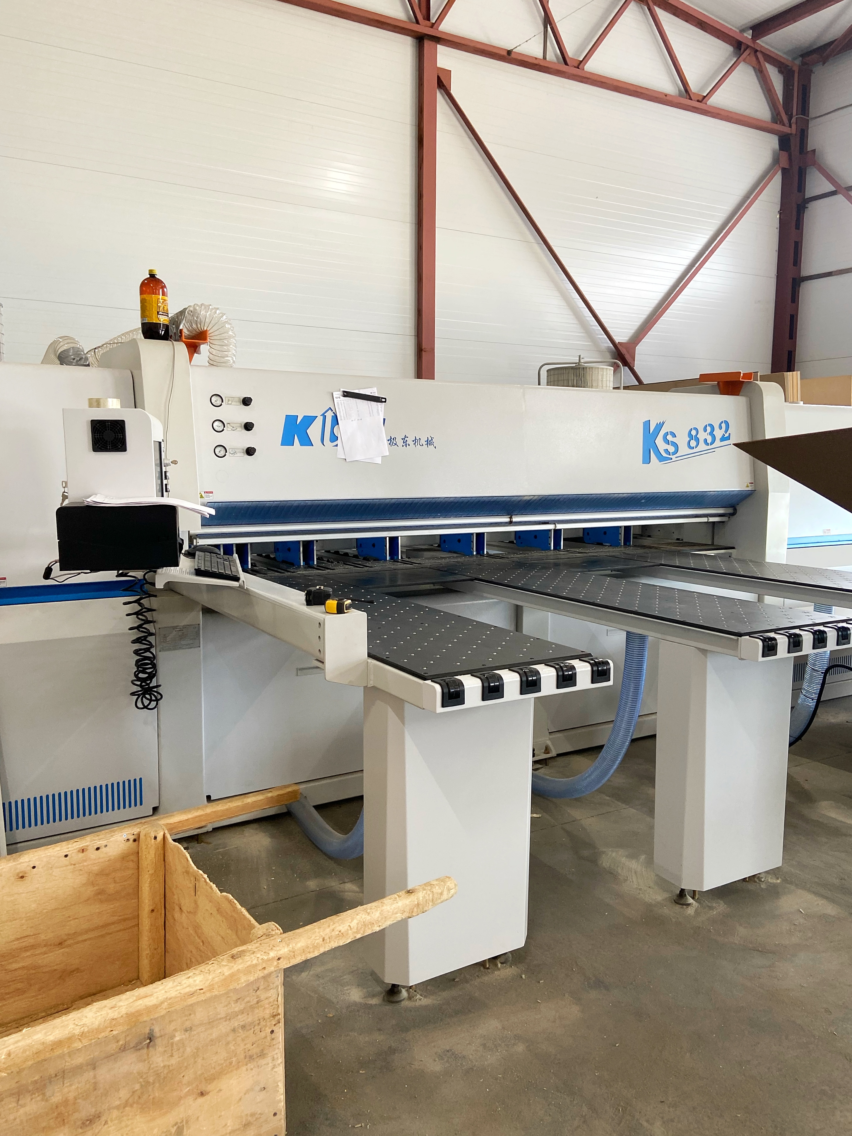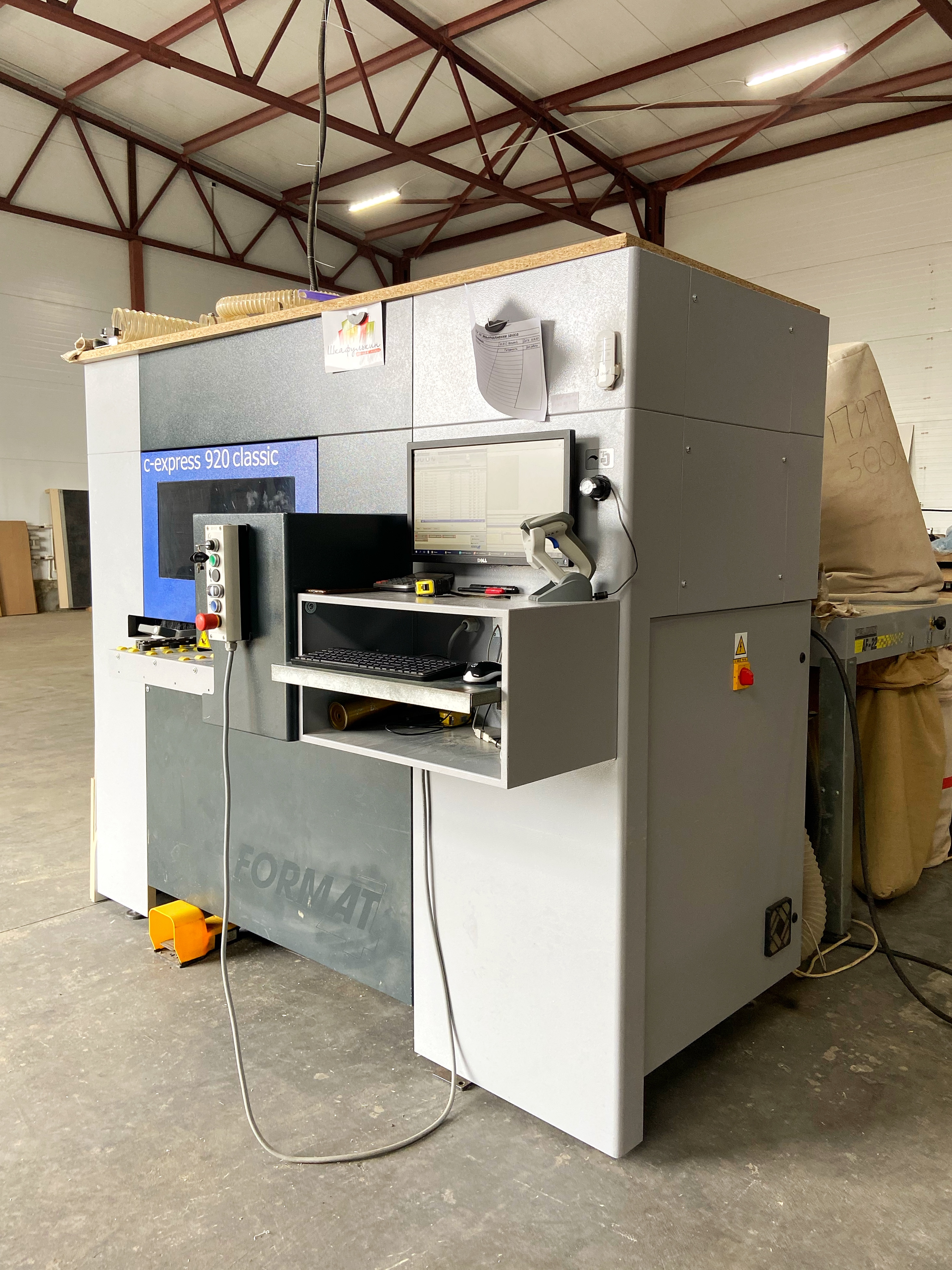В нашем производстве также задействован тяжелый форматно-раскроечный станок промышленного класса Format 4AT Kappa 550, предназначенный для чистового раскроя листового материала на заготовки по заданным размерам. На протяжении более десятилетия kappa 550 является первым выбором среди форматно-раскроечных станков и в новой версии продолжает оставаться на своей лидирующей позиции. Отличительными характеристиками Kappa 550 являются: электронно-механическое управление параллельным упором, высотой пильного диска и его наклоном, неограниченное количество ячеек памяти для инструмента и программируемая оптимизация раскроя. Новый форматно-раскроечный центр позволяет не только увеличить производительность, но и кардинально поднять качество изготовления СИП-домокомплектов, минимизировав негативное влияние человеческого фактора. Управление станком осуществляется через ЖК монитор с сенсорным экраном. Алюминиевый подвижной стол “X-Roll” оснащен прецизионной системой направляющих. Длина раскроя до 3700 мм.
