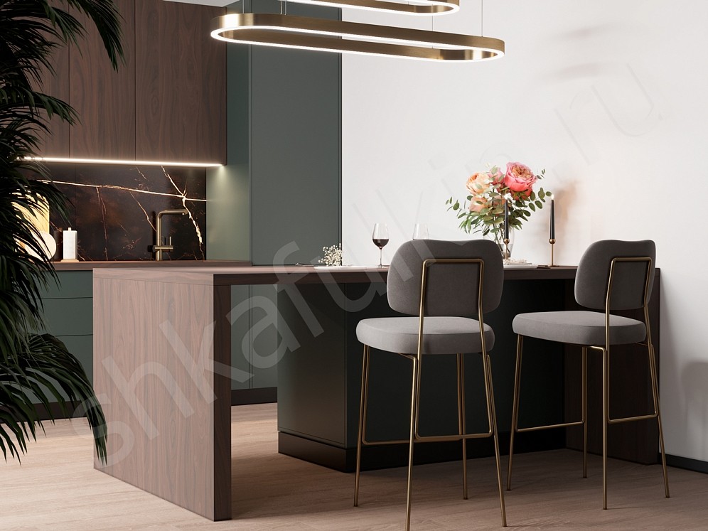 - Для разнообразия и улучшения планировки прямой кухни рекомендуется добавить полуостров или остров. Это позволит создать удобное пространство и, возможно, добавить барную стойку вместо обеденного стола. Важно не забыть обеспечить достаточный проход минимум в метр, чтобы кухня выглядела аккуратно и обеспечивала свободное движение.