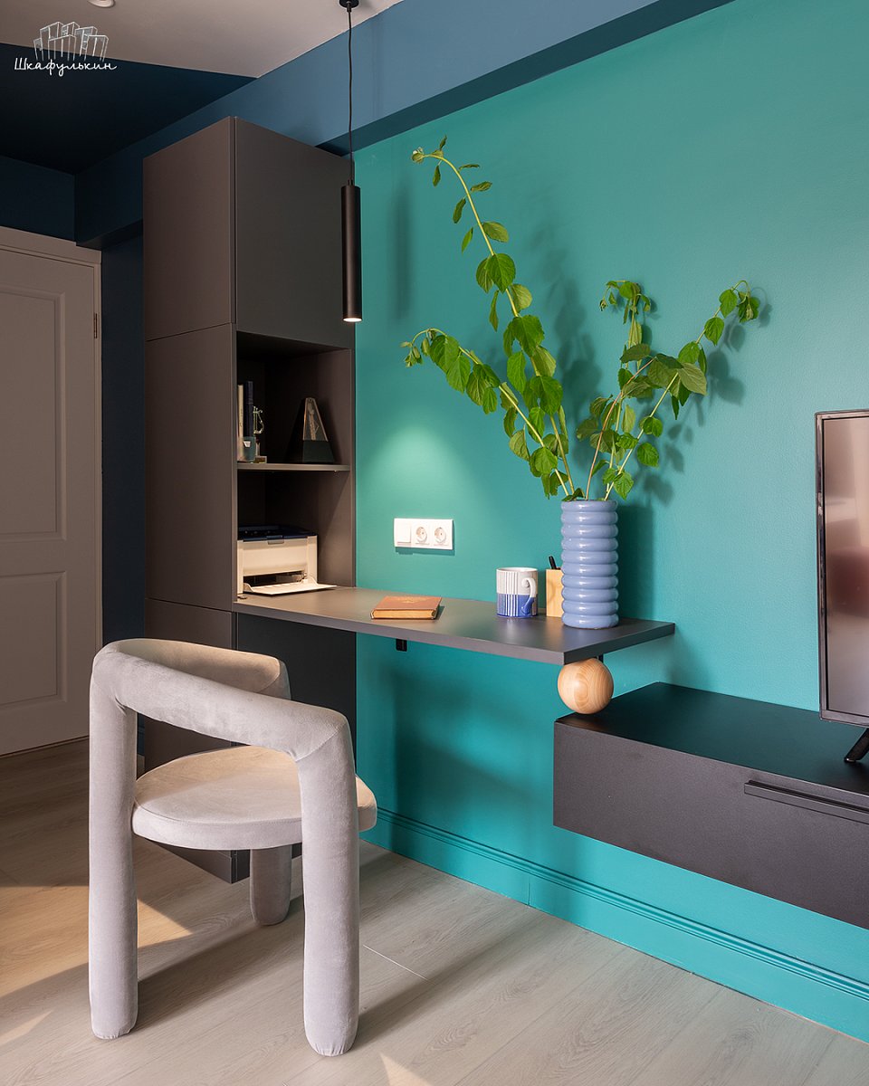 Важно, что в этом проекте нет случайных решений: каждый изгиб, цвет и материал работают на создание атмосферы, где комфорт соседствует с вдохновением.