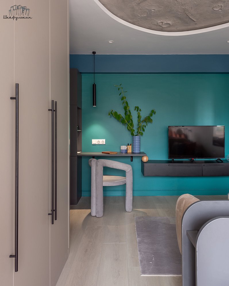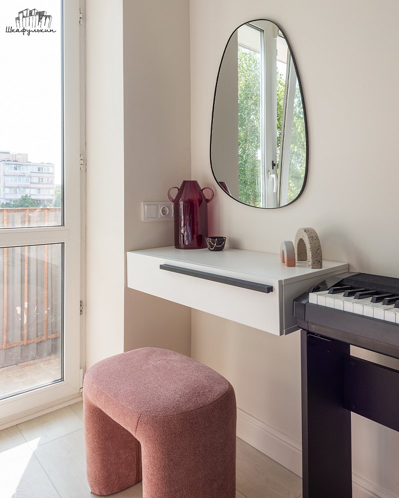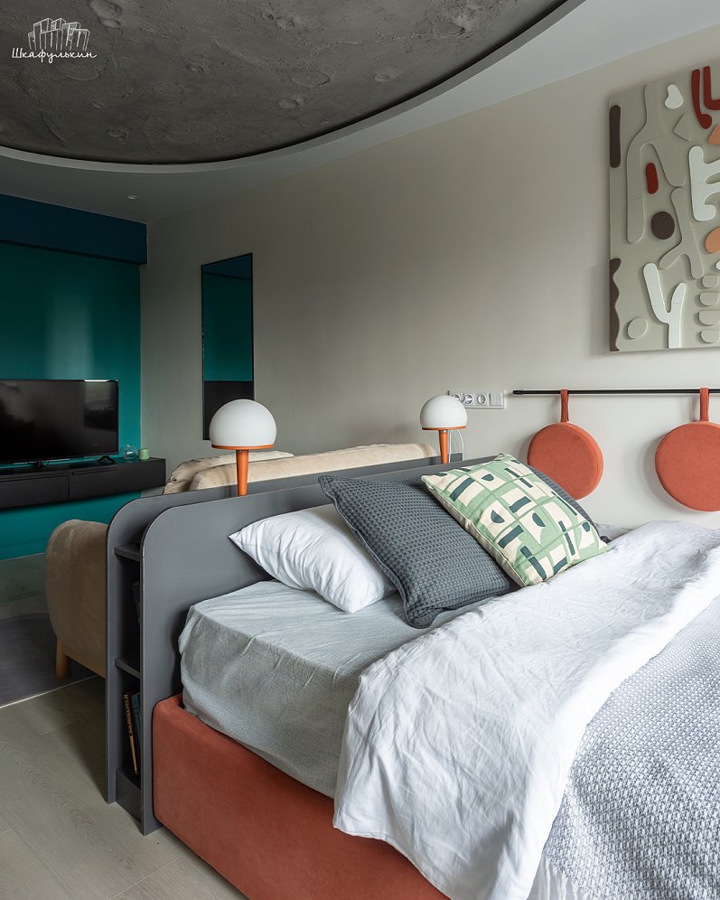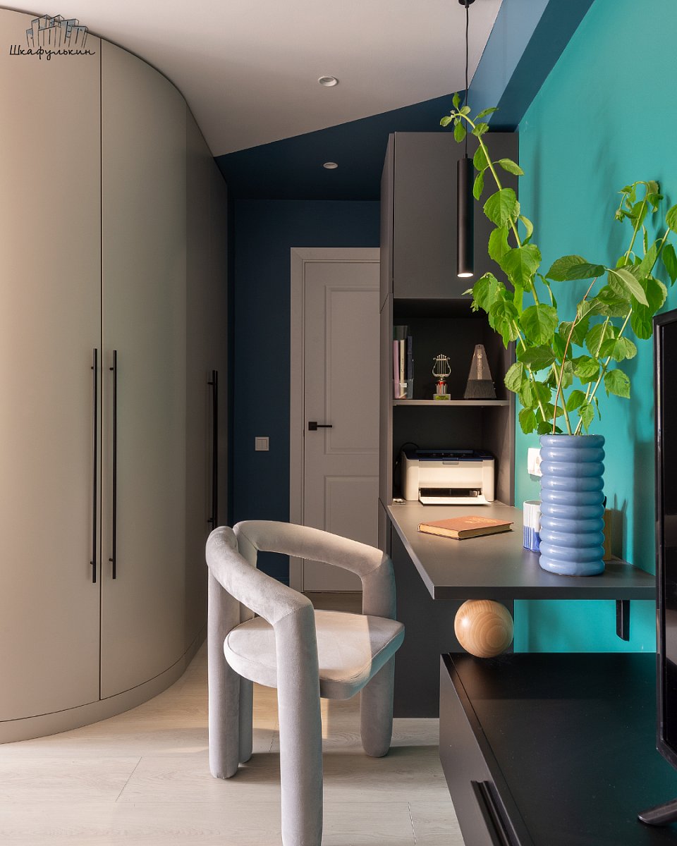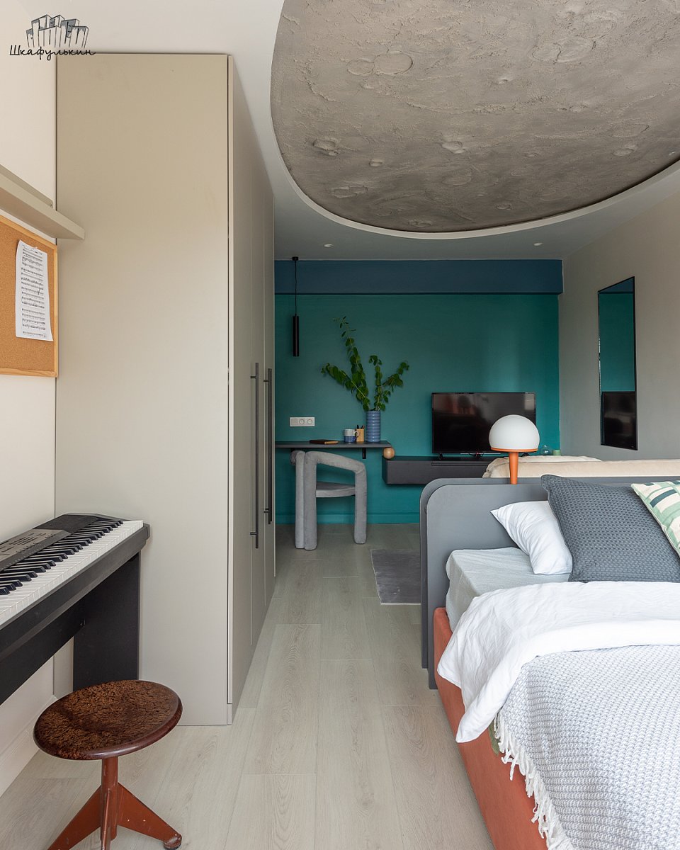 Этот проект, реализованный нашей командой совместно с прекрасным дизайнером Ольгой Цуриковой — не просто задача, а возможность доказать, что даже самые смелые идеи можно воплотить в жизнь, сохранив практичность. А для семьи музыкантов их новая комната стала тем самым местом, где хочется творить, отдыхать и встречать гостей — ярко, удобно и с любовью к деталям.