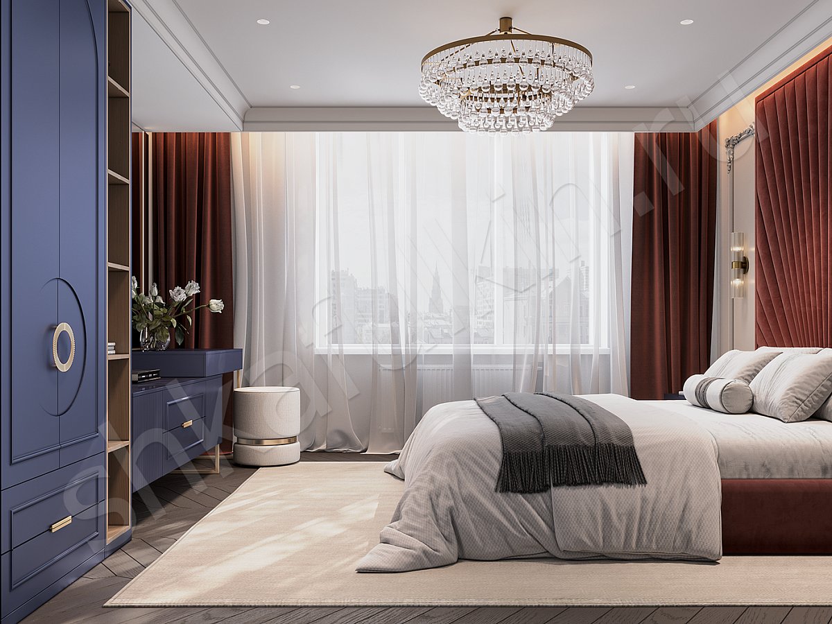 При выборе цветовой схемы для интерьера важно не только учитывать, какие цвета сочетаются с основным цветом, но и принимать во внимание функциональность помещения. Например, для спальни насыщенный синий цвет может быть слишком ярким и холодным, тем более если использовать его в избытке. Лучше всего сочетать этот цвет с более нейтральными тонами – бежевым, белым или серым, чтобы создать баланс и сохранить уютную атмосферу в спальне. Эти цветовые комбинации поспособствуют расслаблению и спокойному сну.