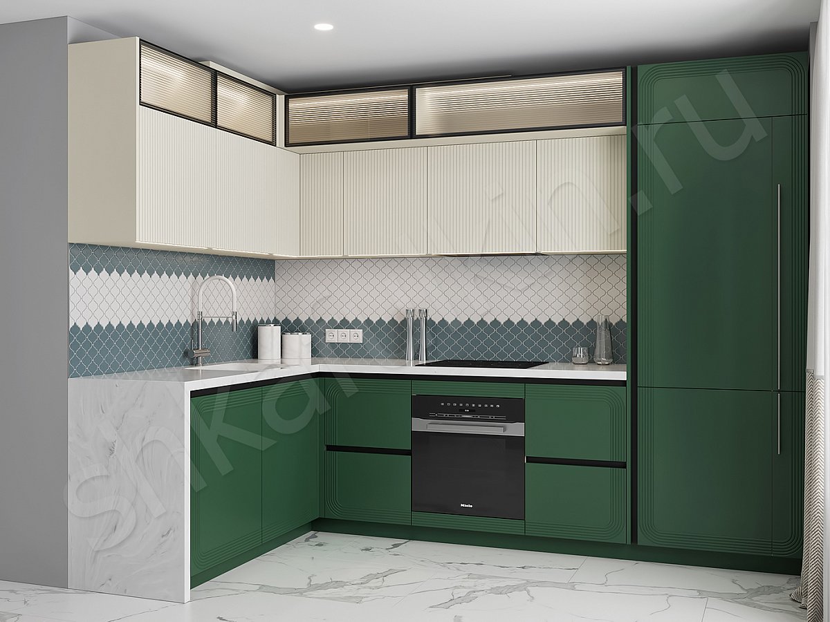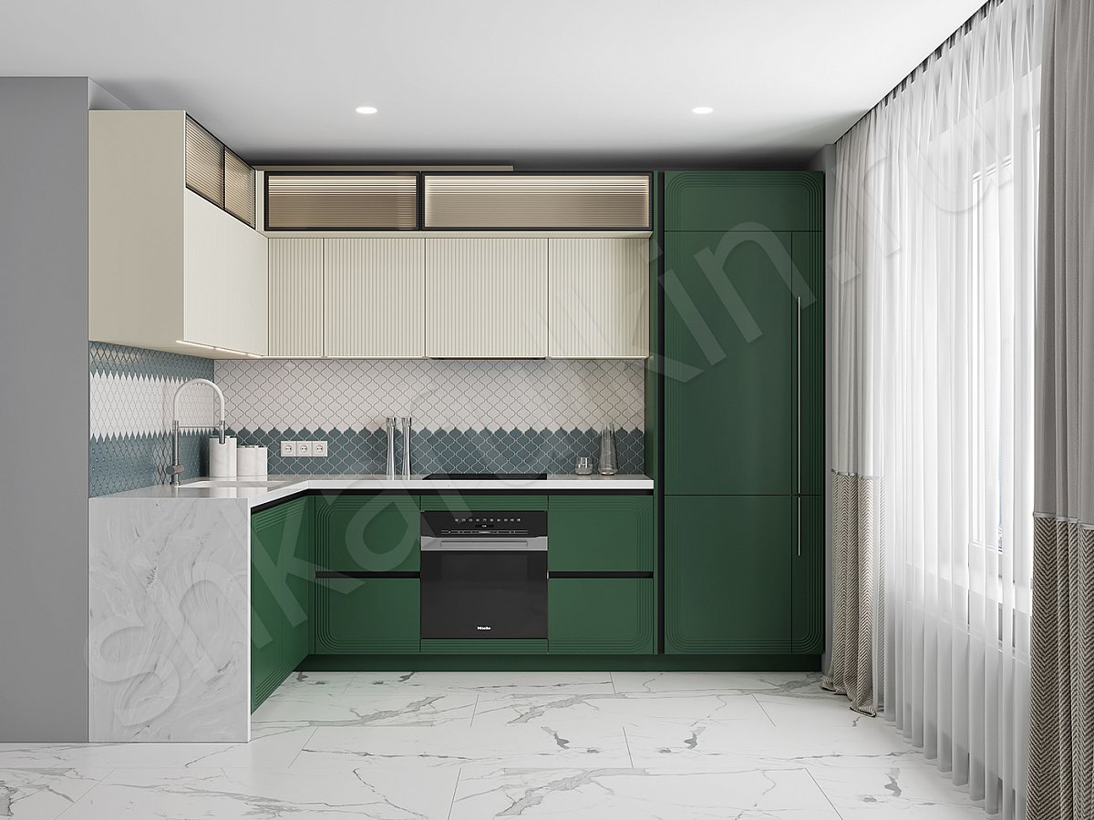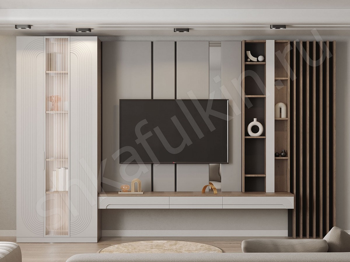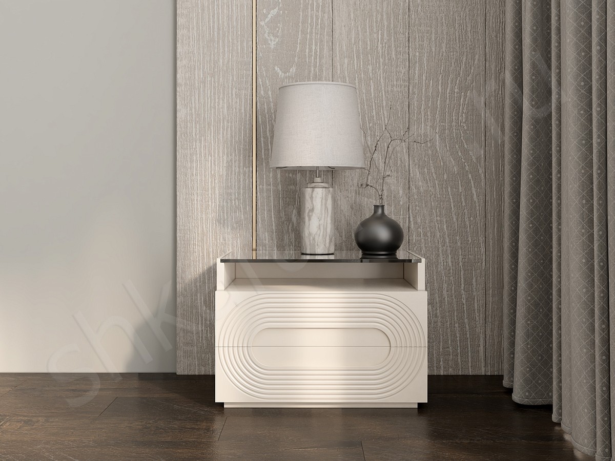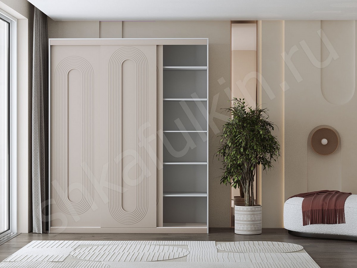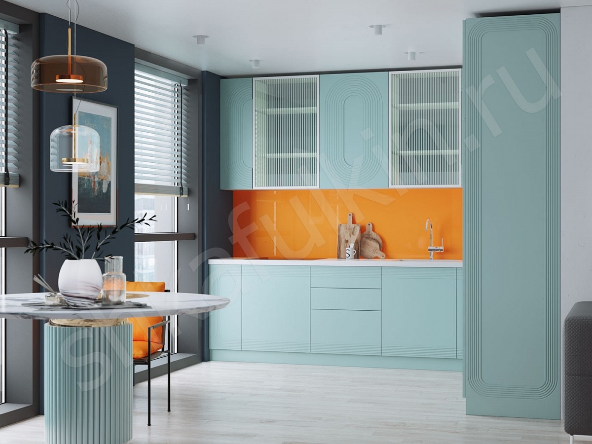 Отличительная черта – все изделия объединены одной фрезеровкой фасада. Рисунок фрезеровки объединяет всю мебель в коллекцию и сквозной нитью создает единство в дизайне квартиры.