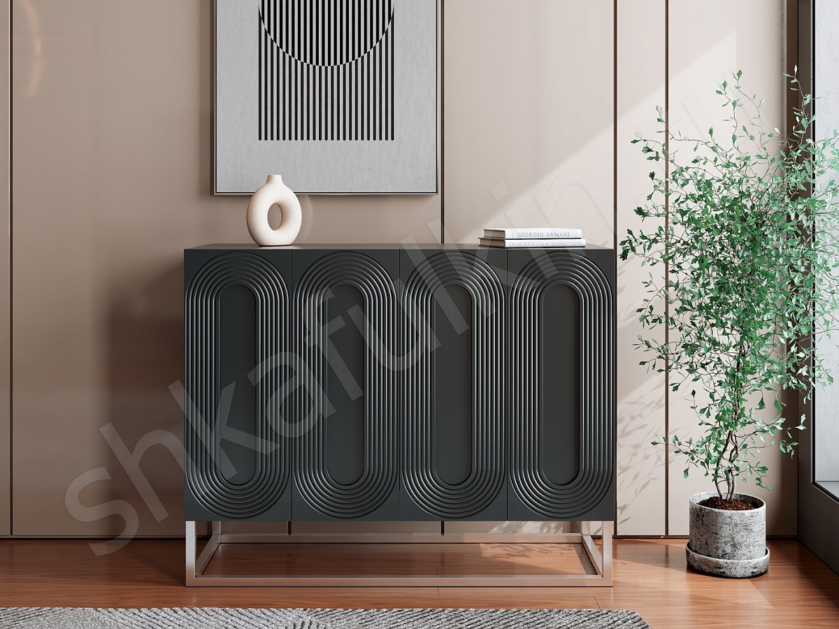 Концепция дизайна в игре на контрасте: сочетание светлых и темных цветов, игра фактур, разные конфигурации объединены геометрическим узором в виде 7 овальных линий. Это не просто предметы мебели, а настоящий ансамбль.