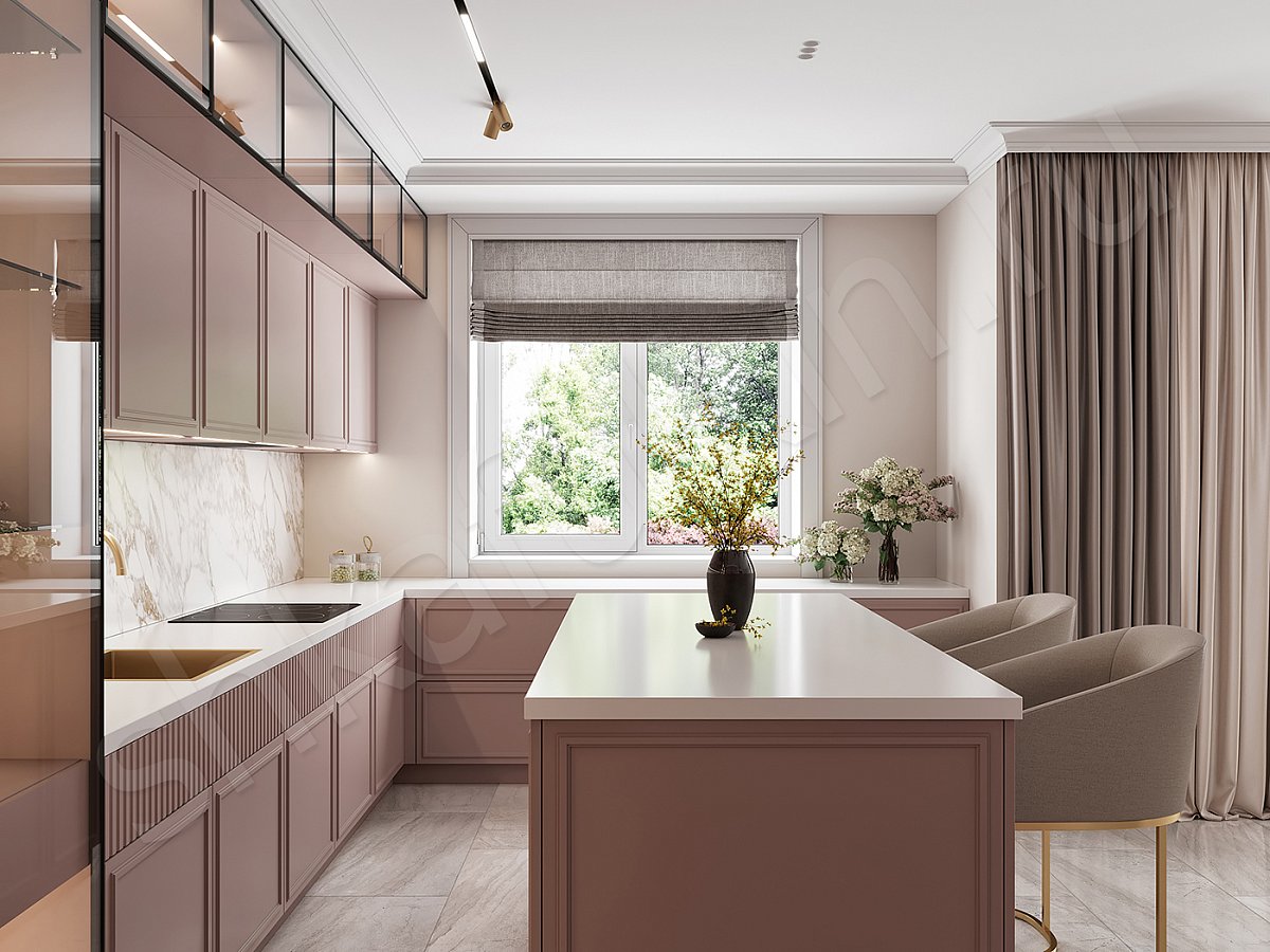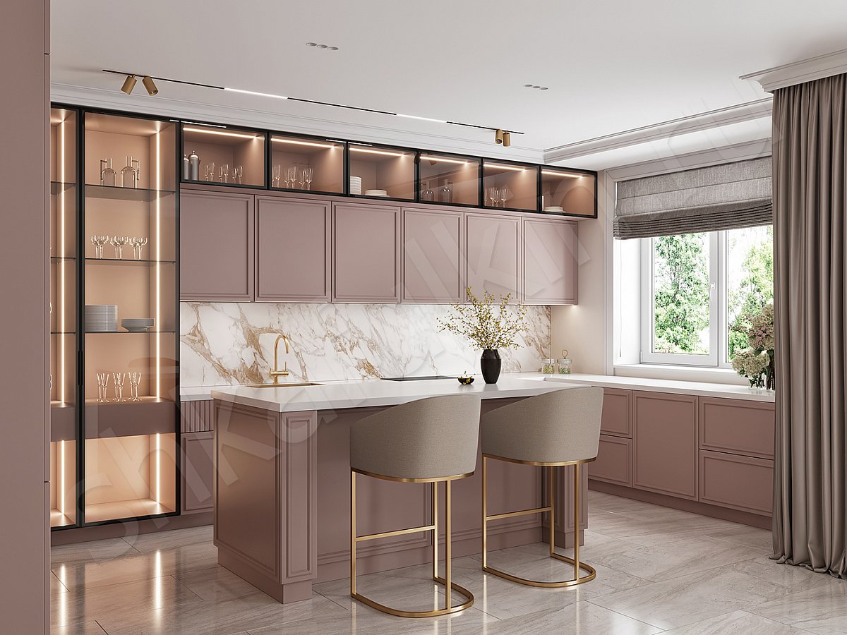МДФ крашенная по NCS, полки стекло.