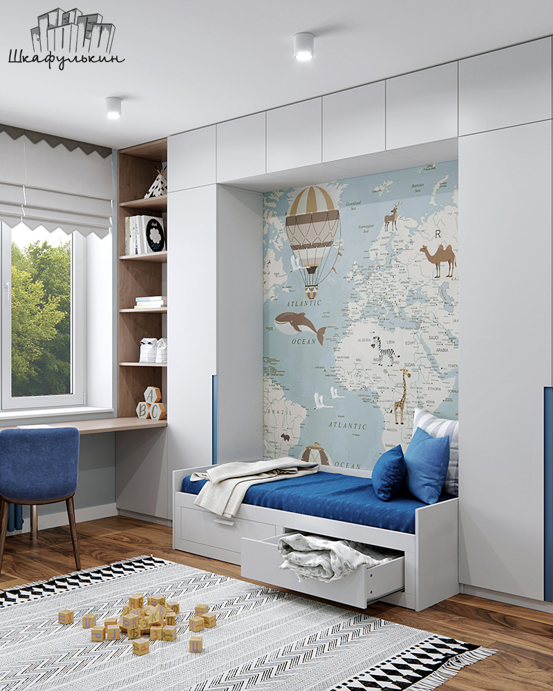 Ящики: 2 шт, направляющие BLUM с доводчиком. Корпус и дно ящика по умолчанию - белые. Дно - усиленное.