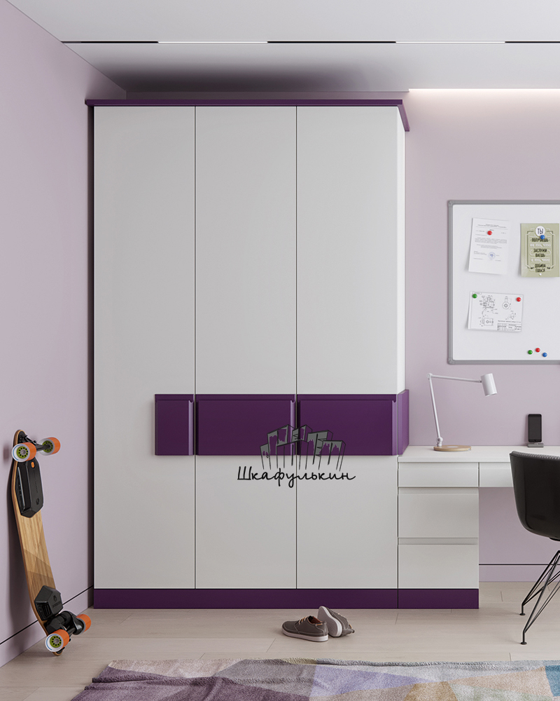 4 фасада распашных, видимая боковина шкафа, цокольные планки без фрезеровки: МДФ 19 мм цвет - RAL 9003 матовый односторонний.