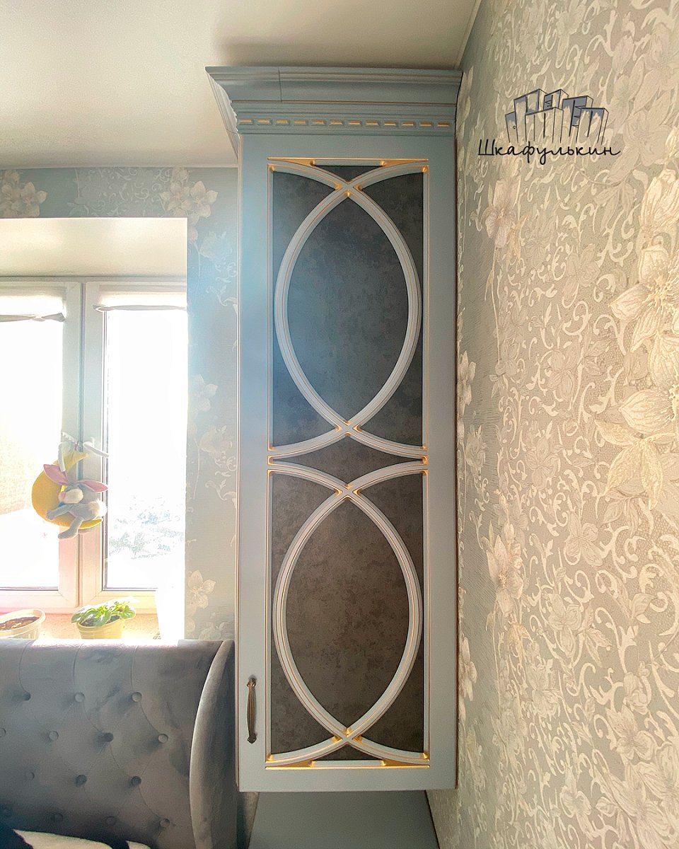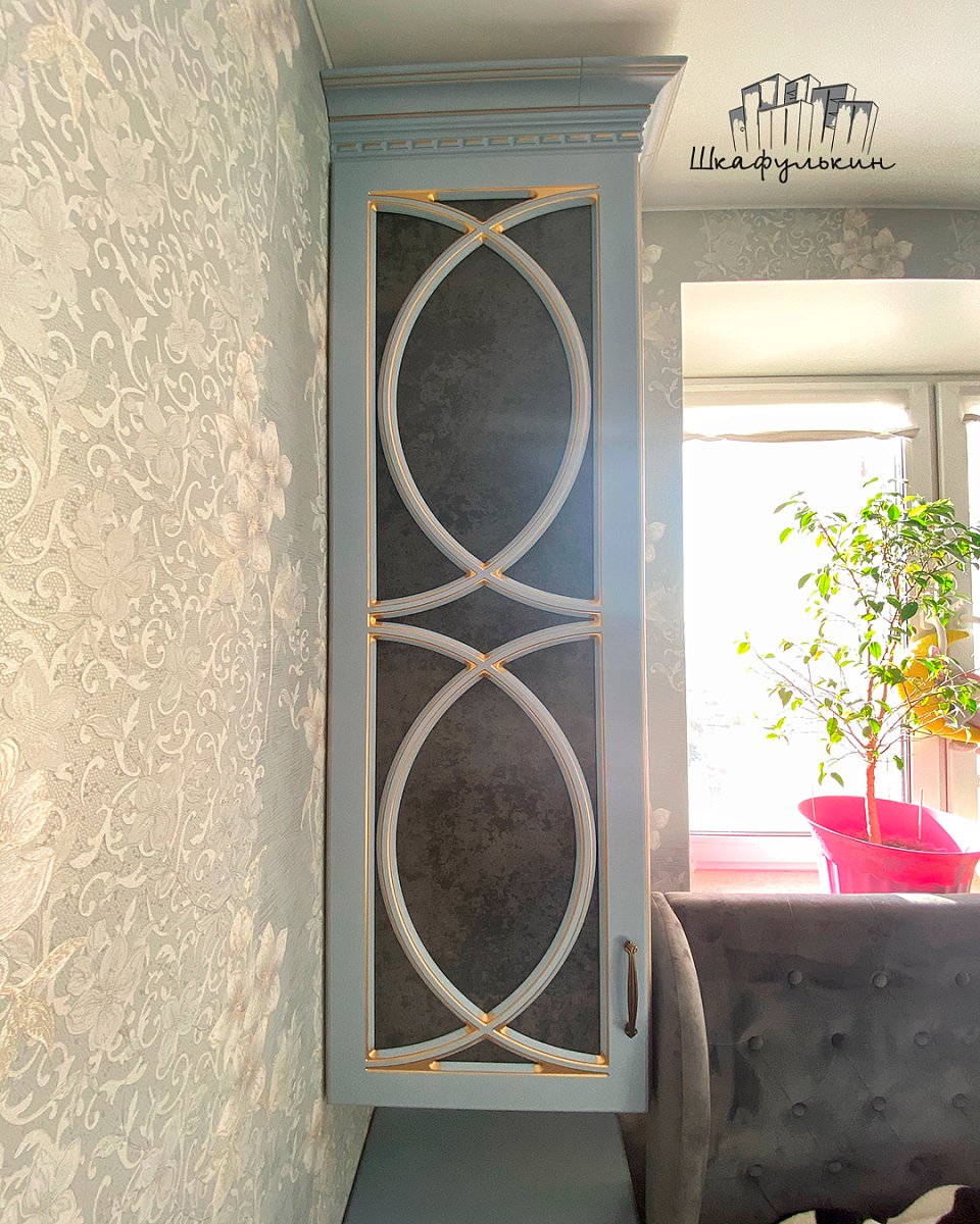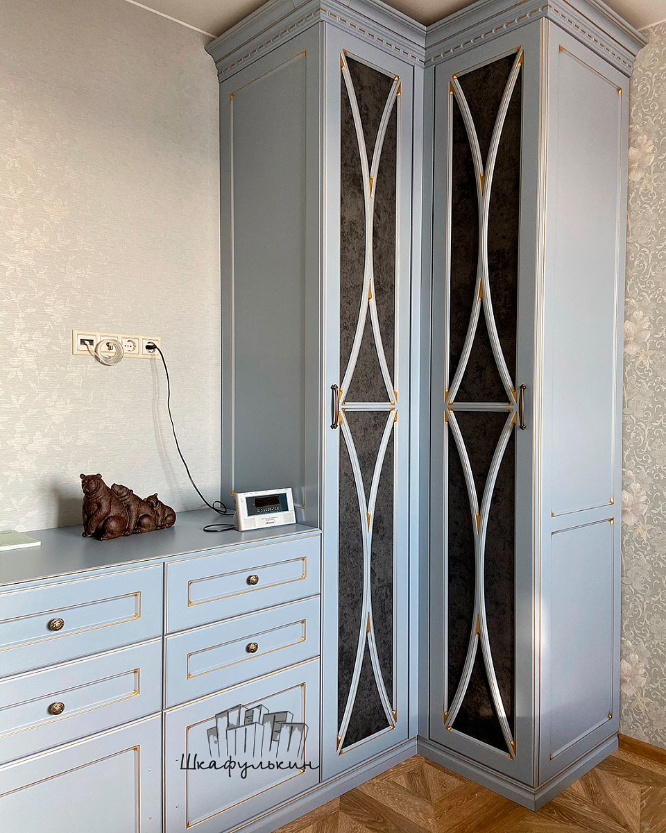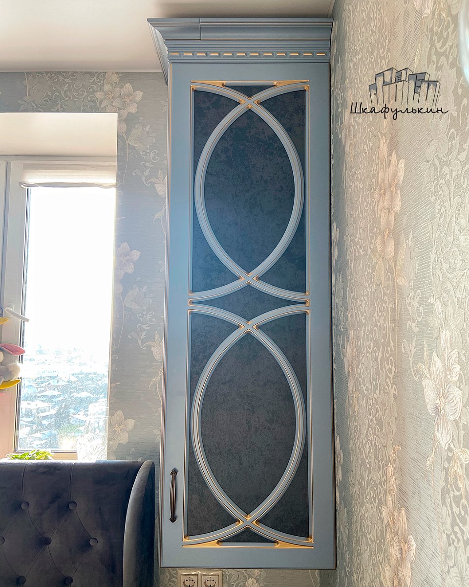 2 двери распашных в МДФ 19 мм цвет - NCS S 3010-R80B матовый, патина - тип №1 Золото.