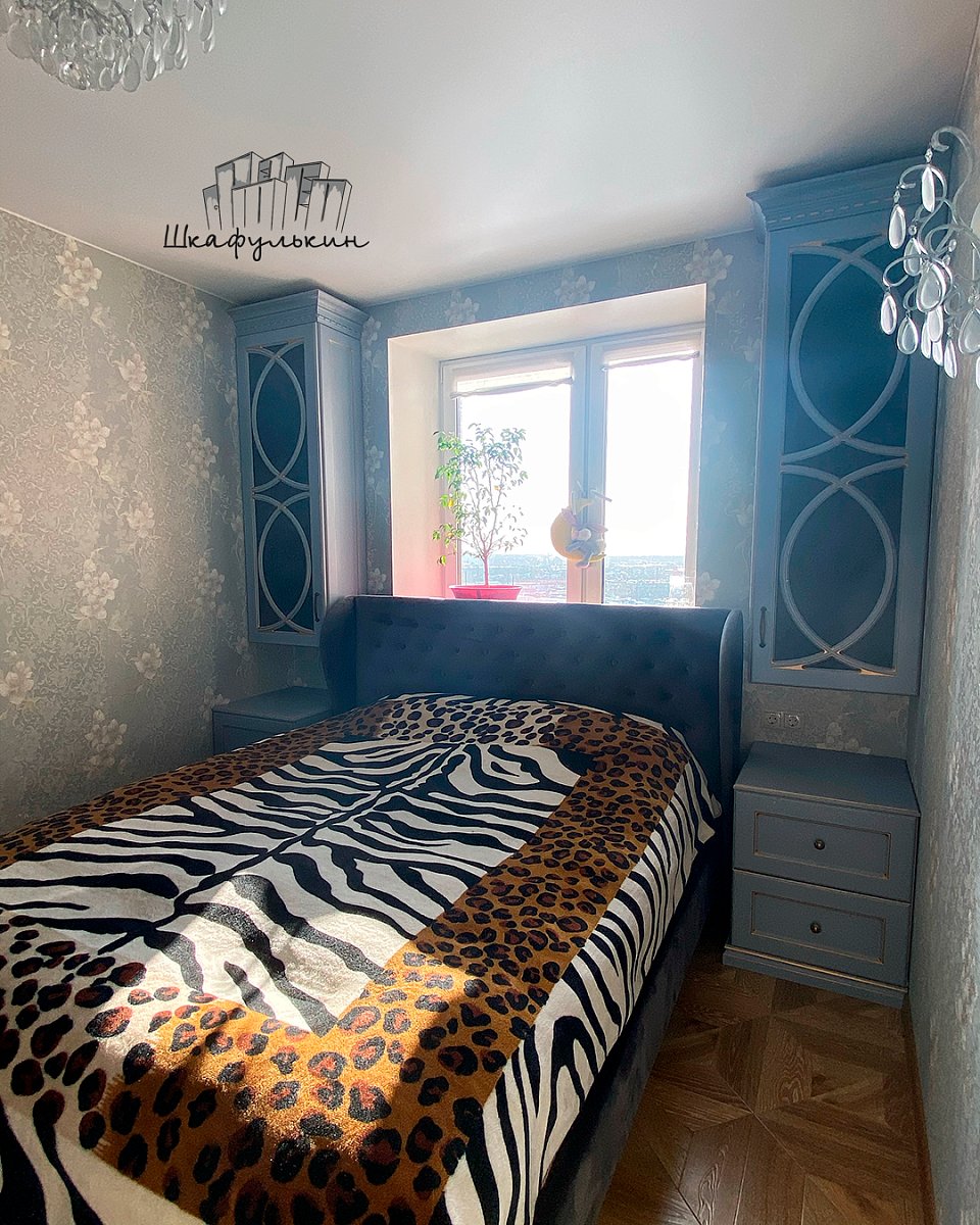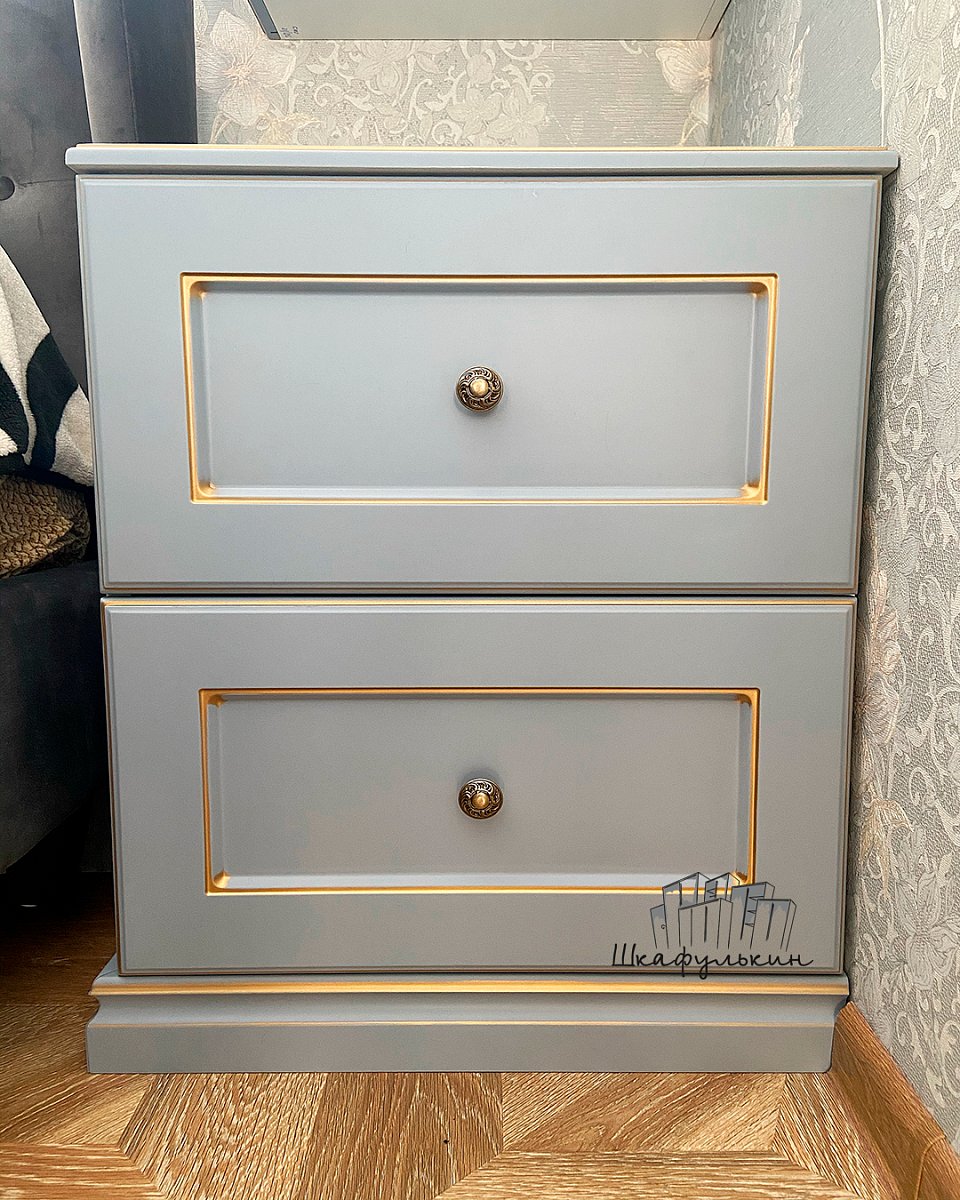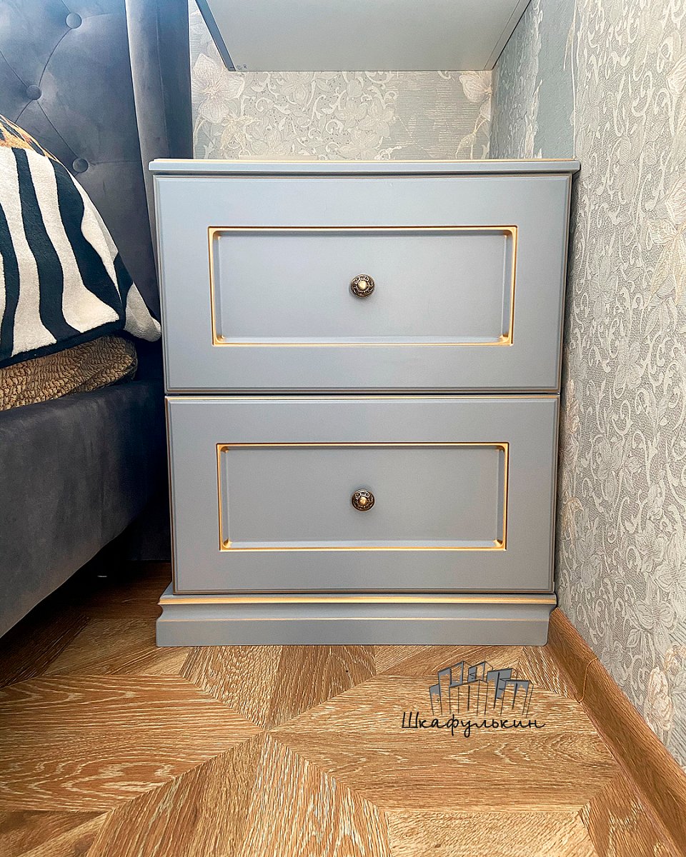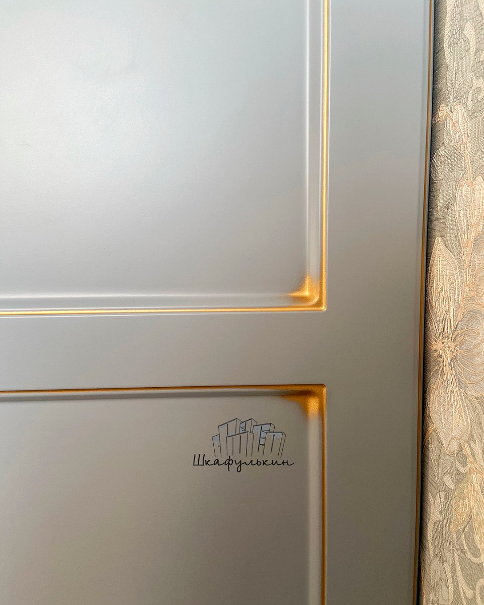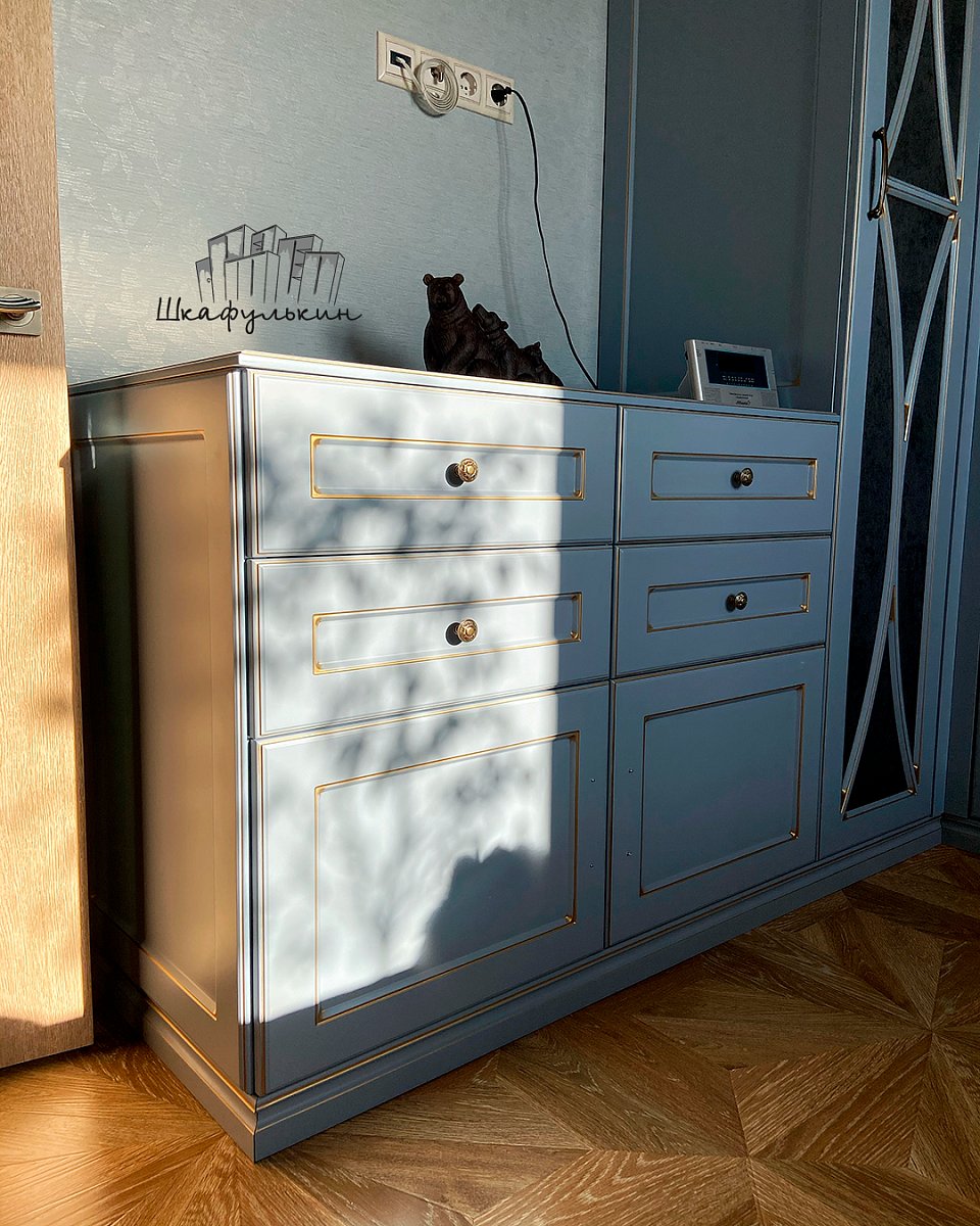 2 двери распашных в МДФ 19 мм цвет - NCS S 3010-R80B матовый, патина - тип №1 Золото.