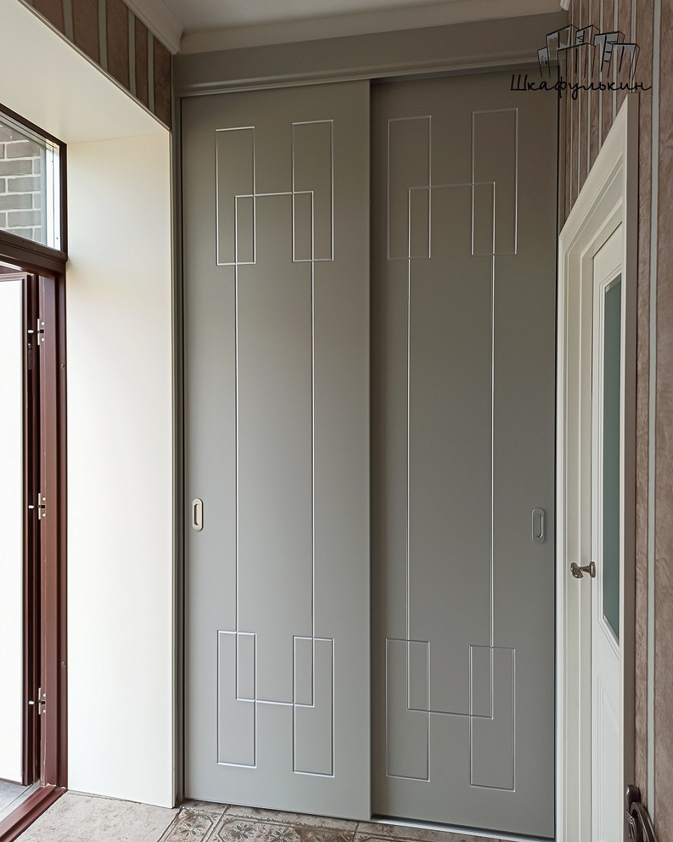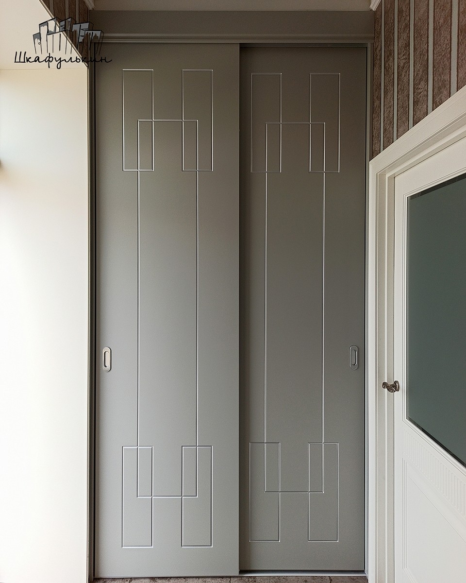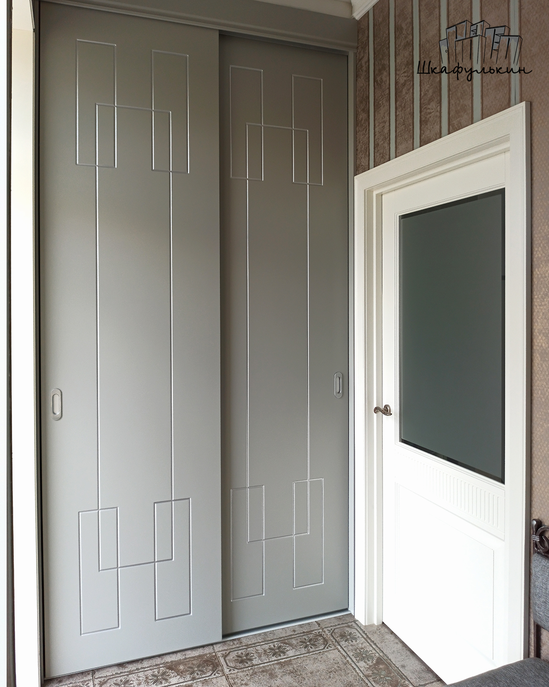 Фасады-купе 2 шт: МДФ 25 мм цвет - RAL 7038 Агатовый-серый , матовый, односторонний. Треки - серебро .