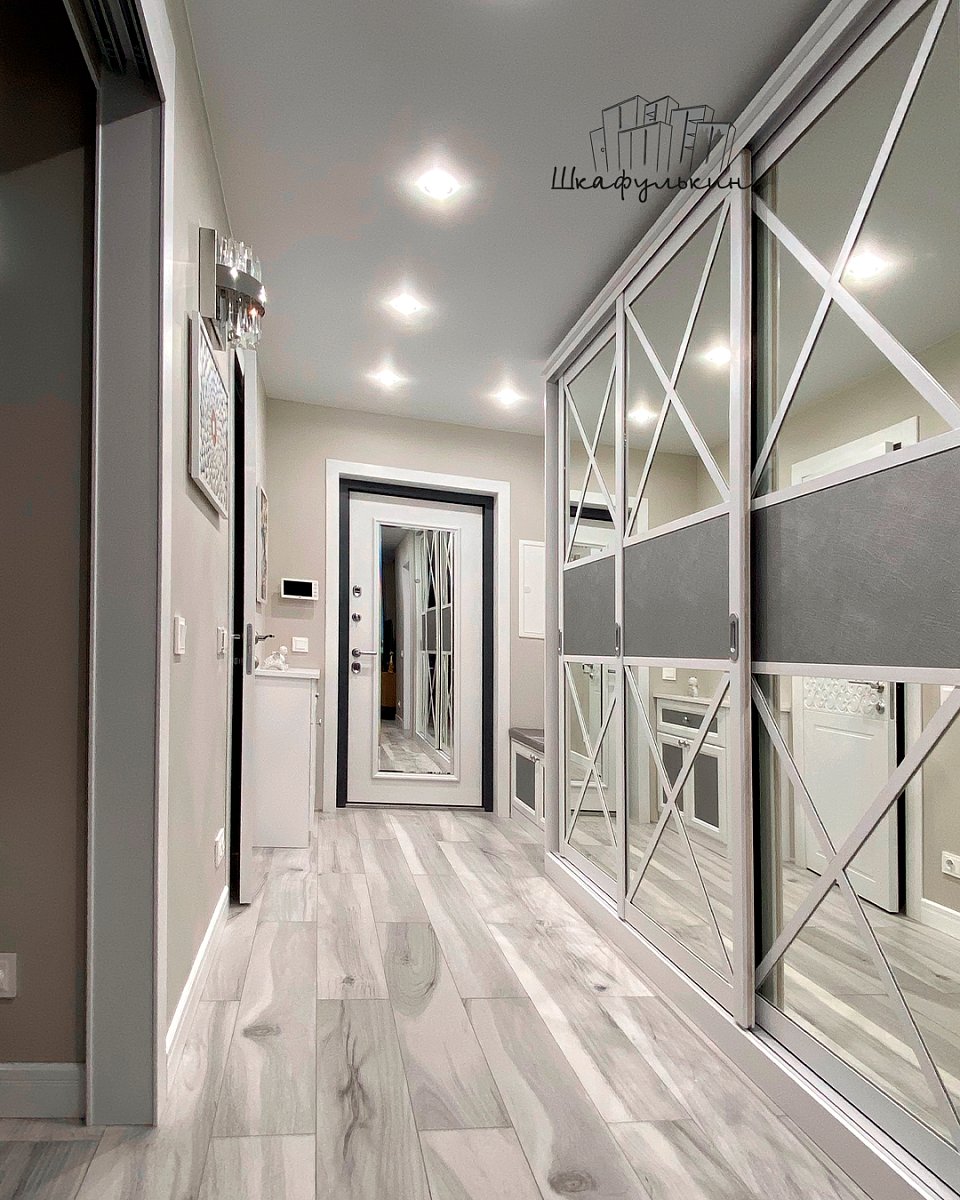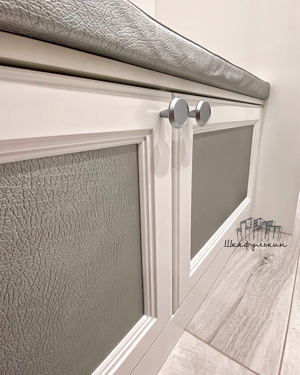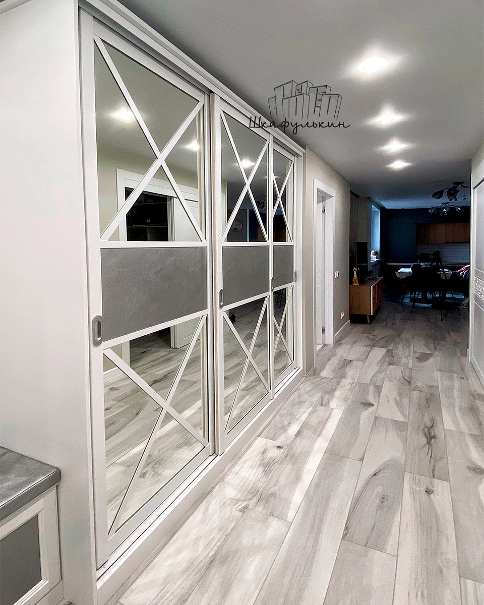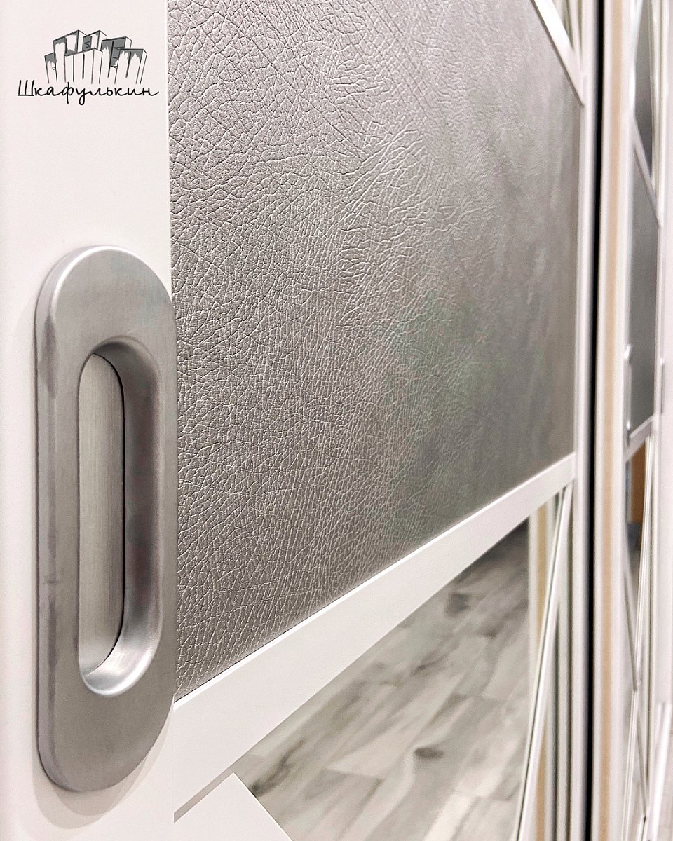 Фасады Гамильтон/вставка экокожа - 2 шт. Двери-купе HOLZ/окрас - 3 шт. Ручки в купе врезные 4 шт, хром матовый