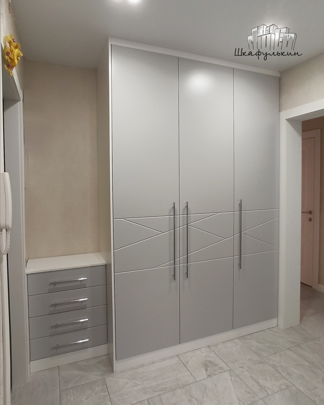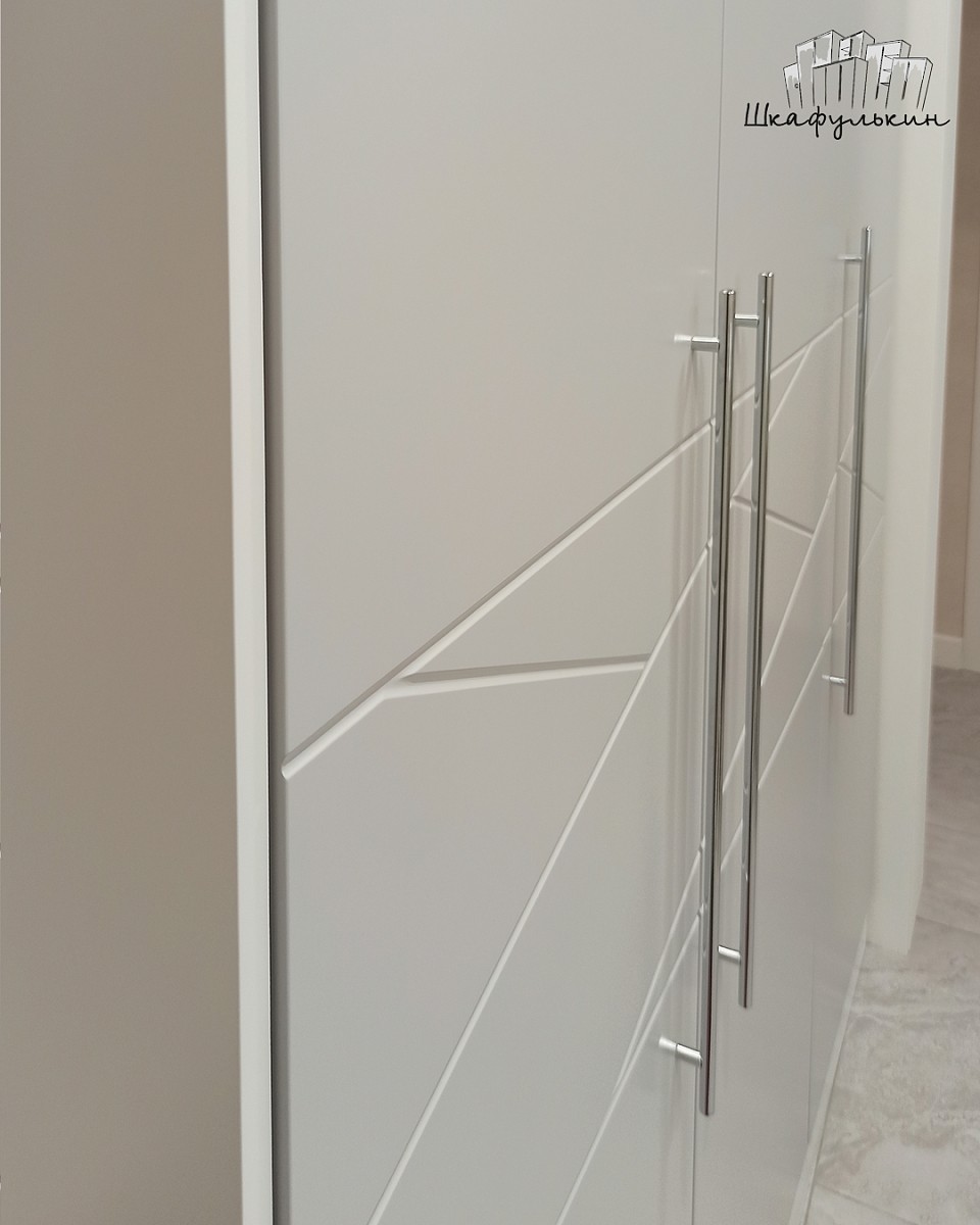 3 двери распашных, МДФ 16 мм. с фрезеровкой 1 кат. цвет - RAL 7047 матовый , фрезеровка R2 по краю, петли BLUM с