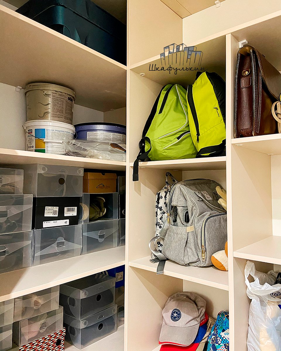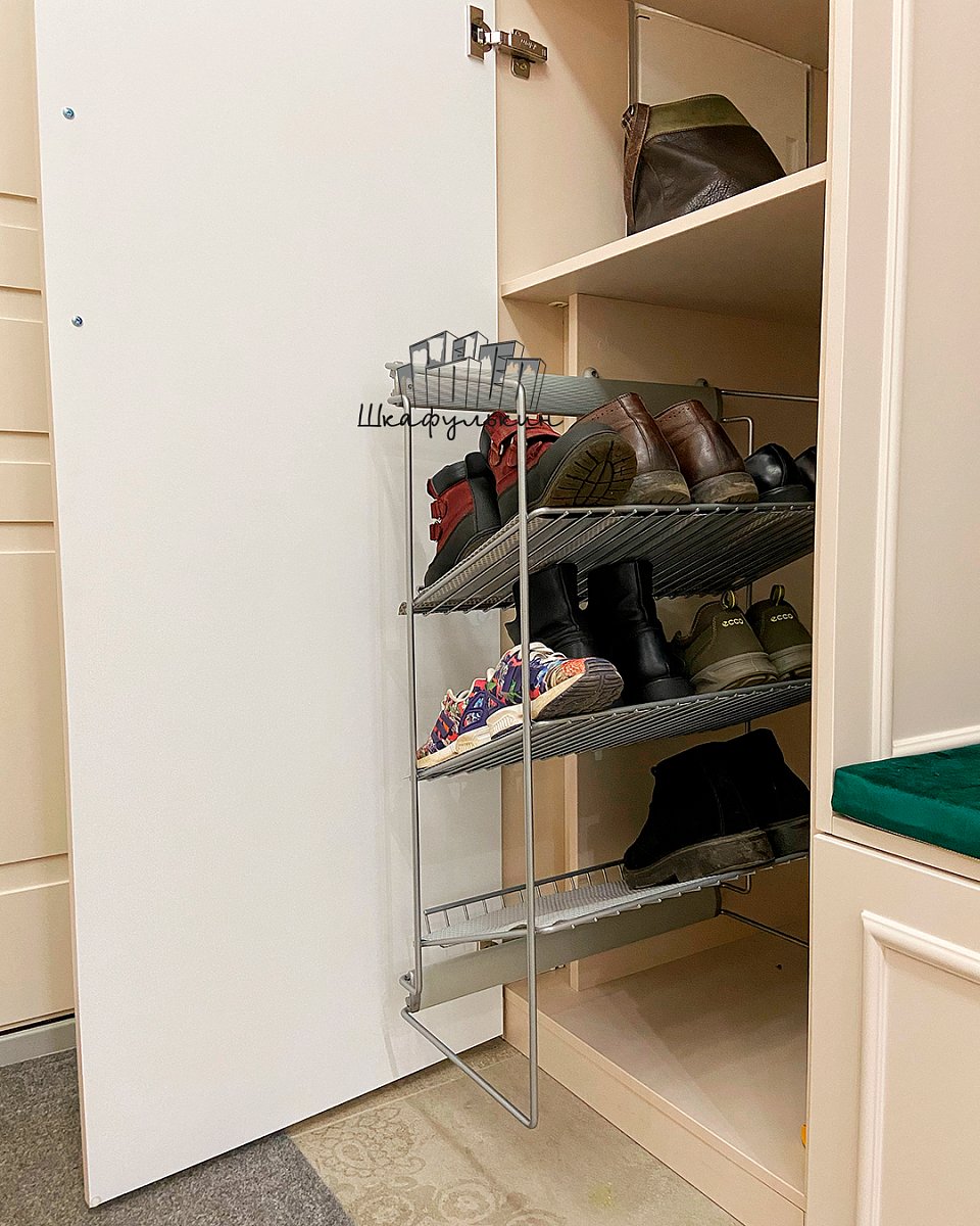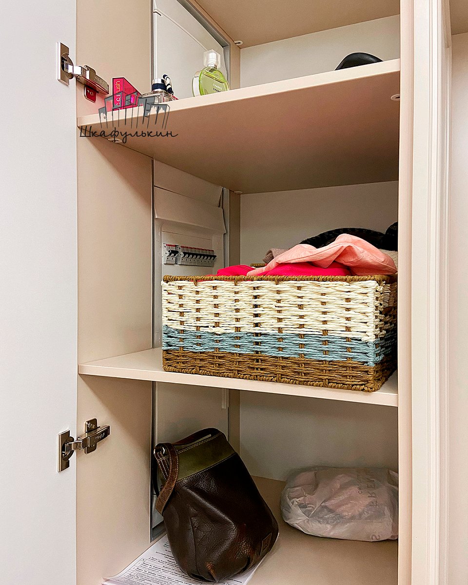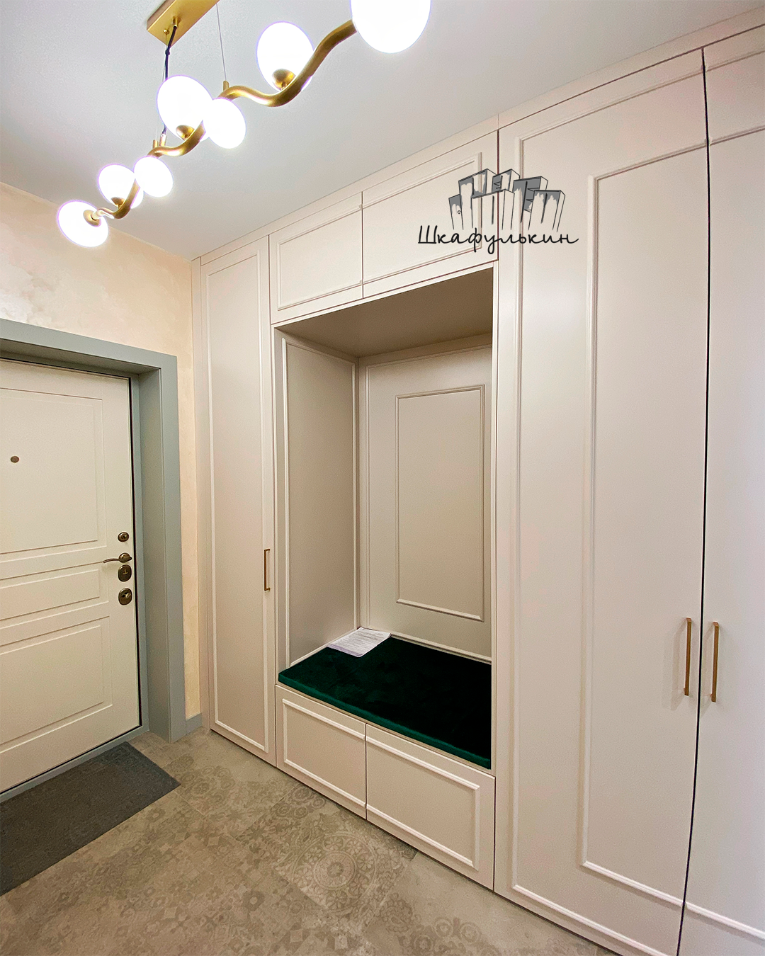 Крышка сидушки, накладные дно и боковины, задняя панель в прихожей в МДФ 16 мм. цвет - NCS S 1002-Y50R матовый.