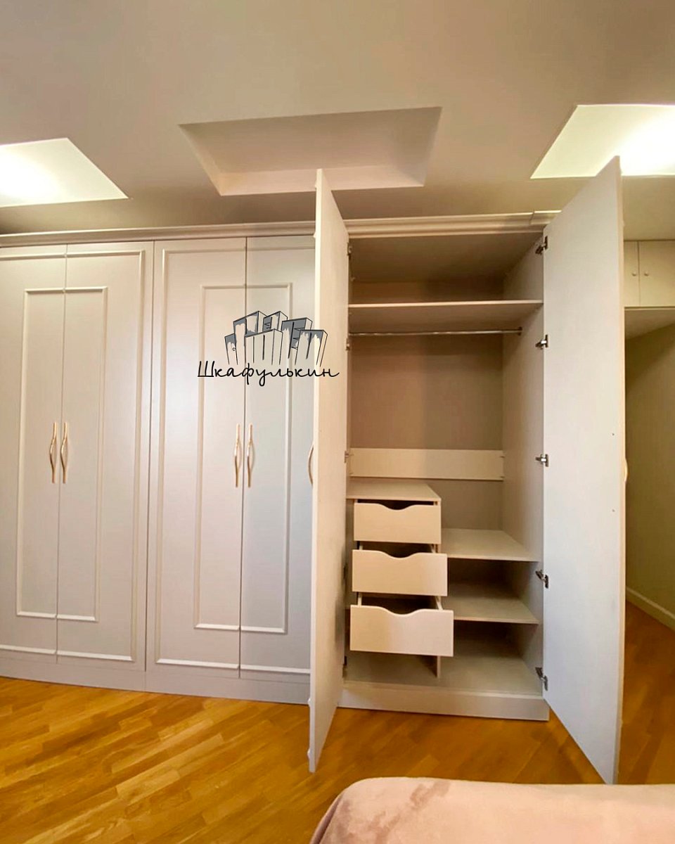 6 распашных фасадов: МДФ 19мм цвет - NCS S 2002-Y50R матовый односторонний(внутренняя сторона-белый ламинат), декор фасадов - Джорджия.
