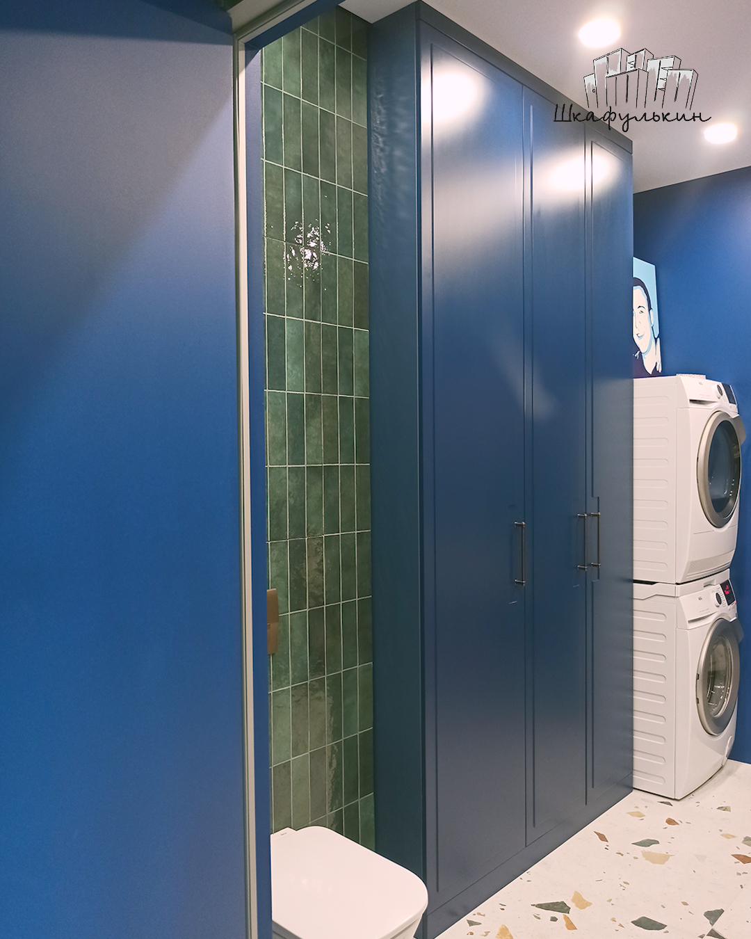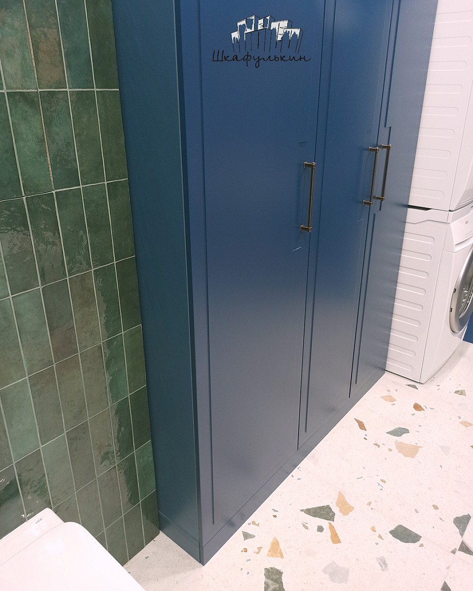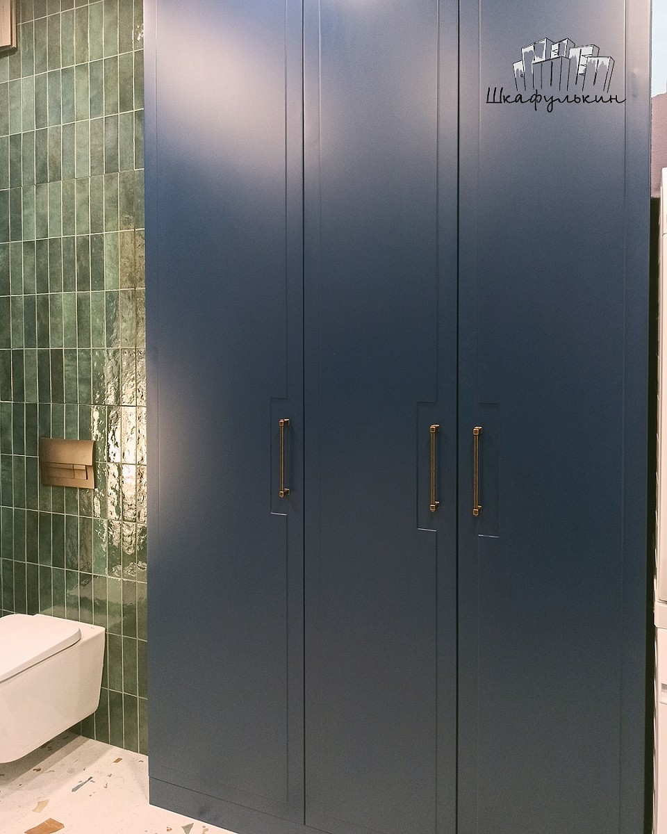 Фасады: Распашные фасады МДФ 19 мм двухсторонняя покраска RAL 5003 мат. Ручки 1413.192.2B - 3 шт.