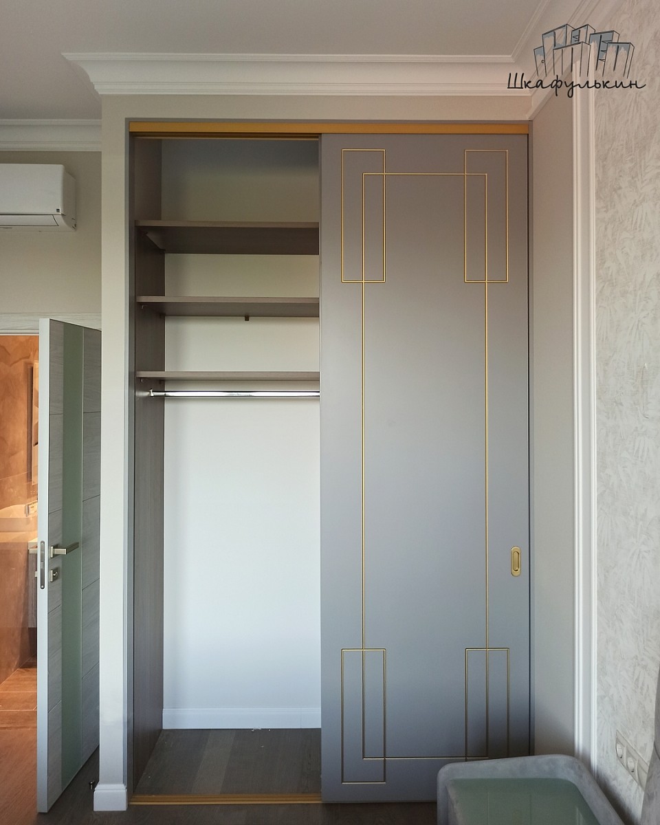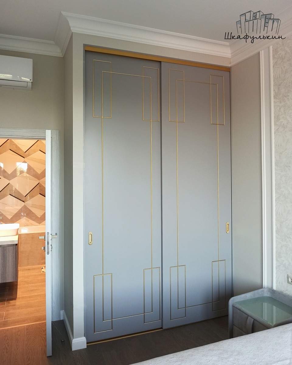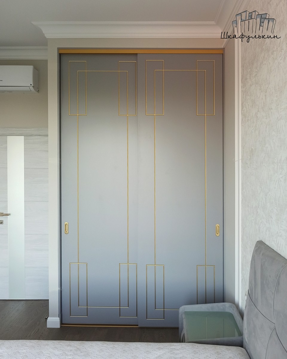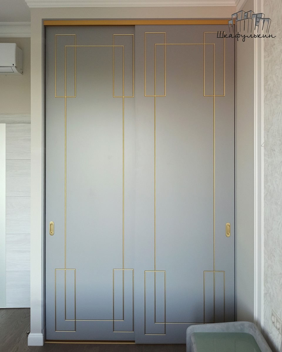 Фасады раздвижные 2шт – МДФ 25мм с фрезеровкой «Маренго», Цвет – RAL 7004 матовый, покраска с 2х сторон