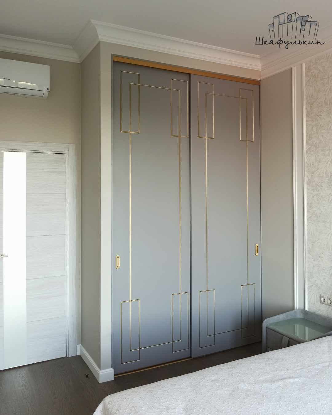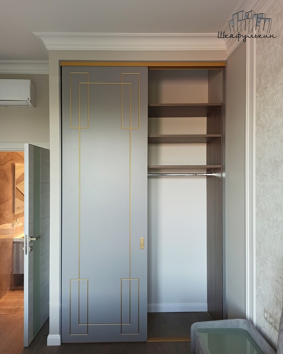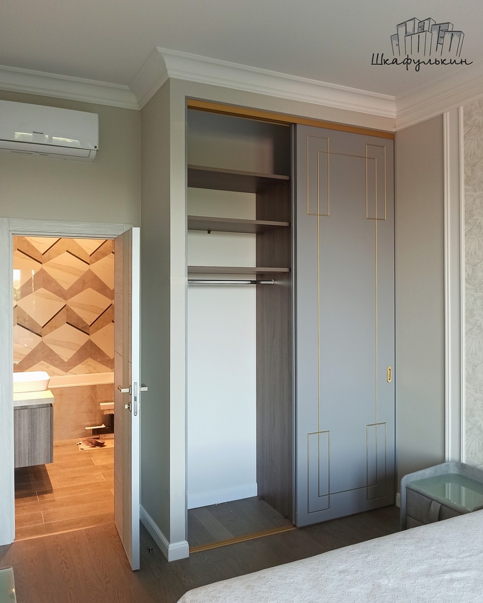 Фасады раздвижные 2шт – МДФ 25мм с фрезеровкой «Маренго», Цвет – RAL 7004 матовый, покраска с 2х сторон