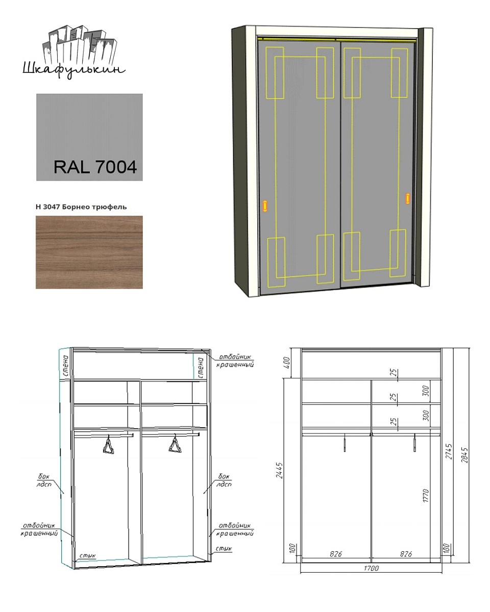 Габаритные размеры изделия: 1700х2845х660 мм.