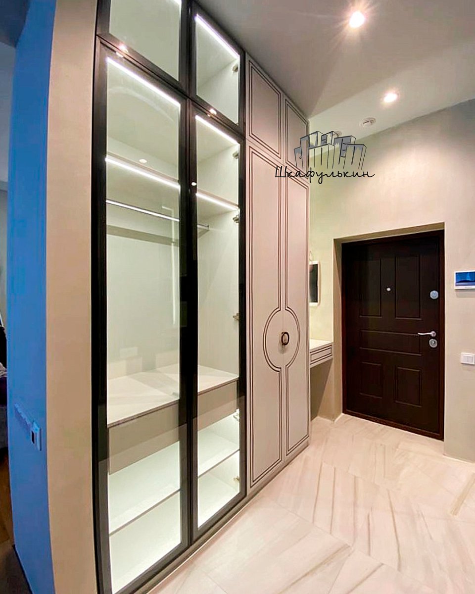 Фасады: МДФ 19 мм, фрезеровка-прихожая "Эллада" - 4 шт, покраска NCS S 1000-N матов 1-сторон, патина-бронза.