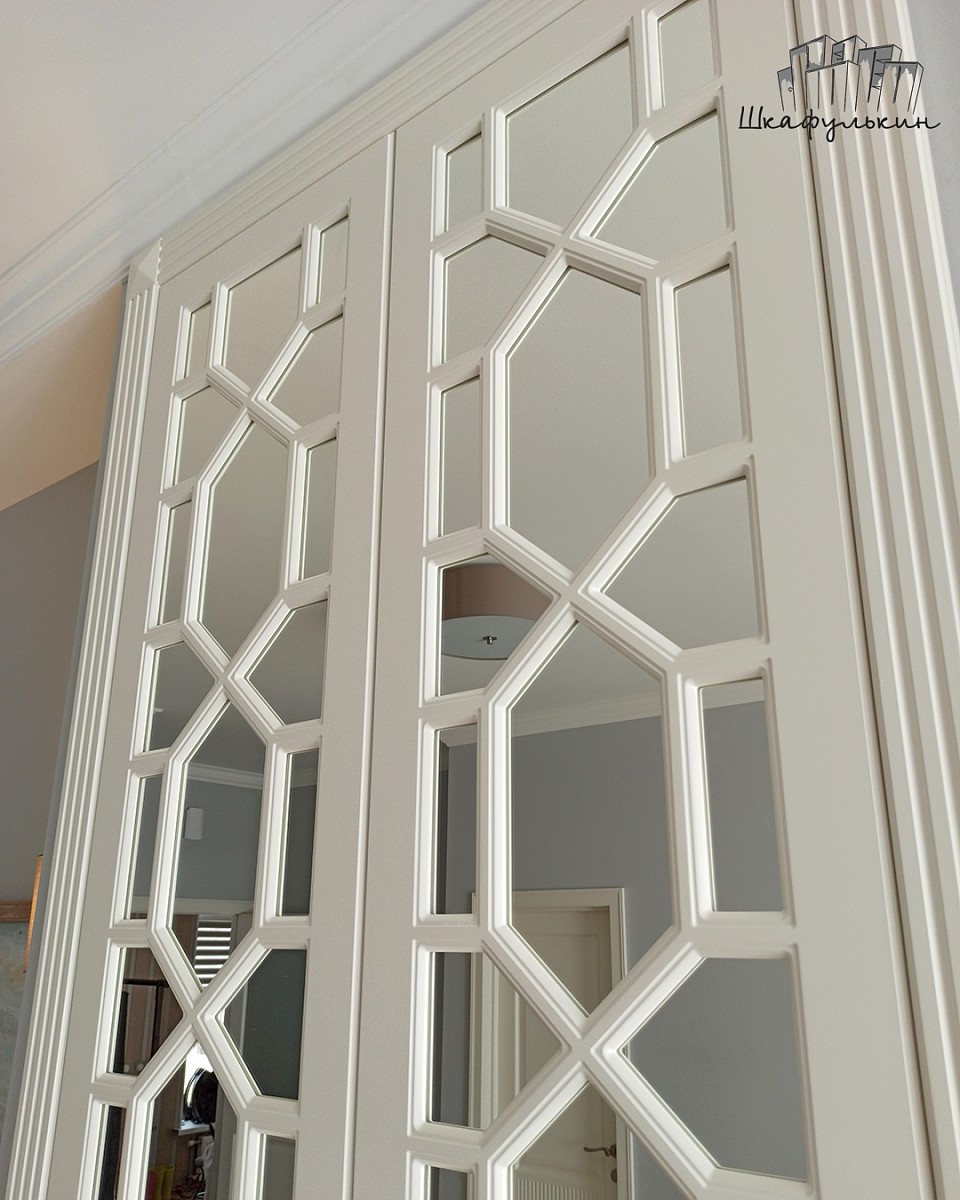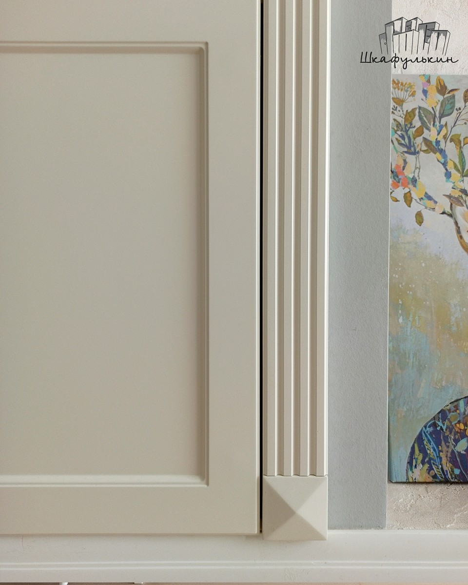 Фасады распашные 4 шт: МДФ 16 мм "Стандарт" (Витрина с раскладкой), цвет - RAL 9010 Белый , матовый, двусторонняя, без патины.