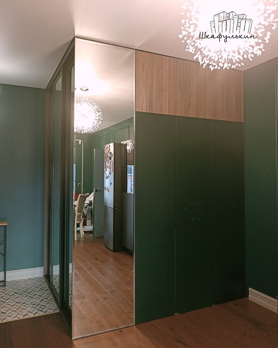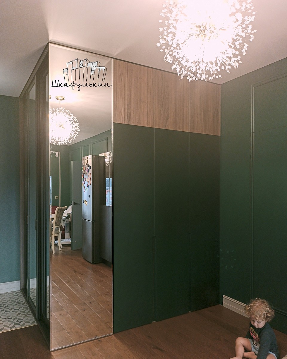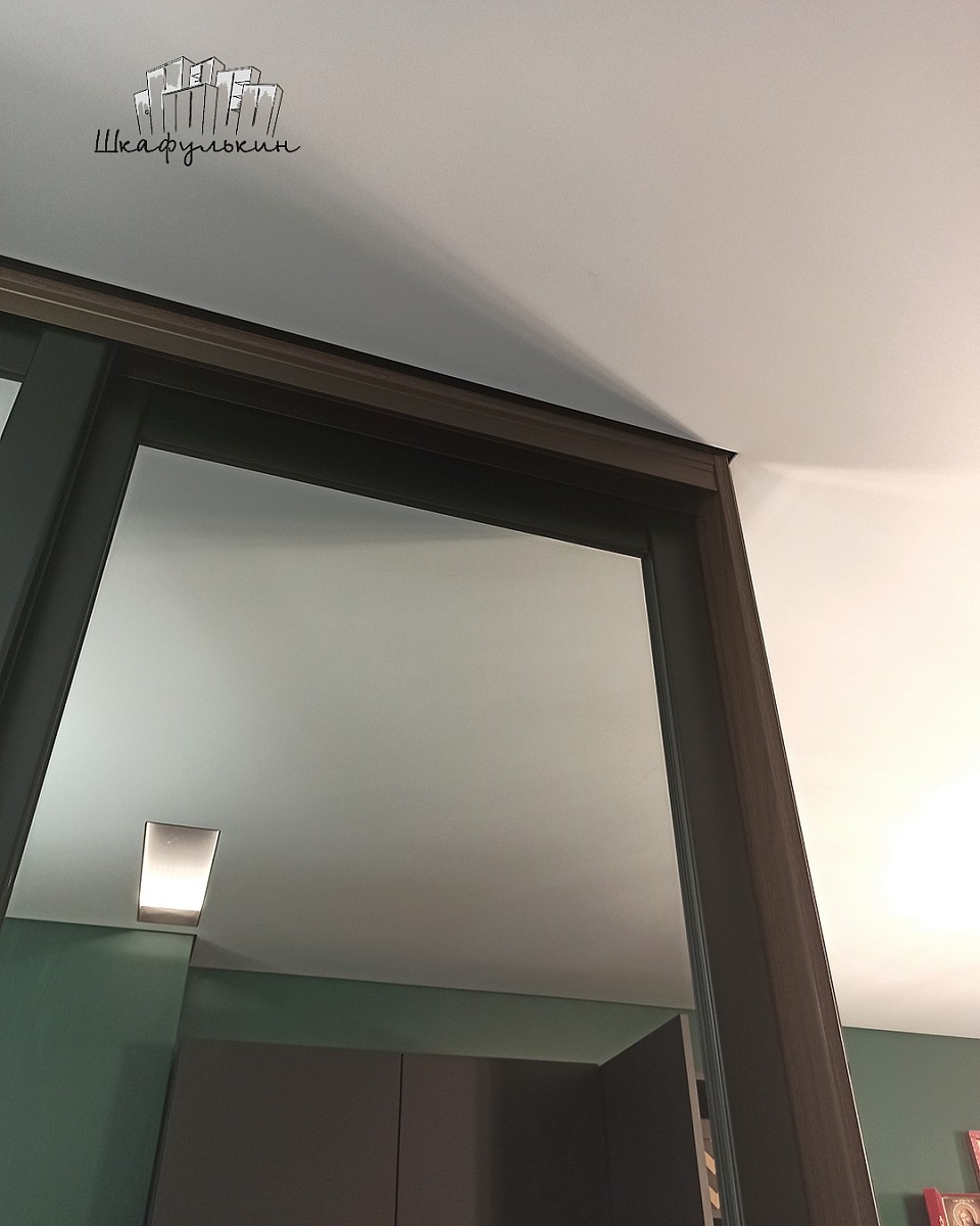 2) Двери -купе HOLZ 55, RAL 6009 мат., вставка зеркало, треки ШАМПАНЬ RAL 6009 мат., ручки овал бронза,